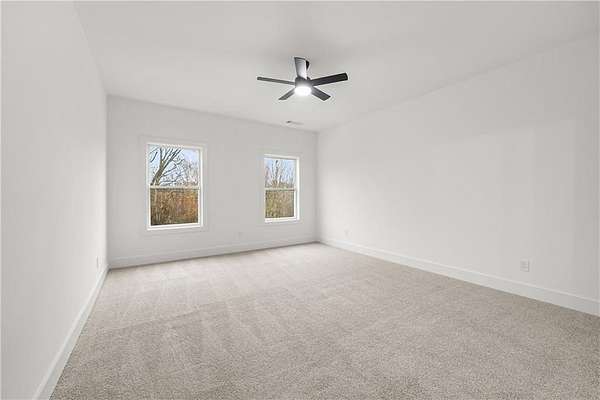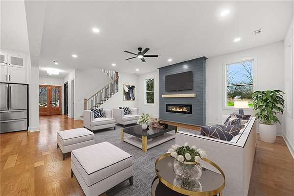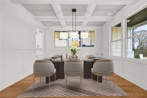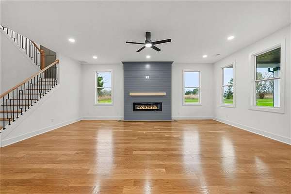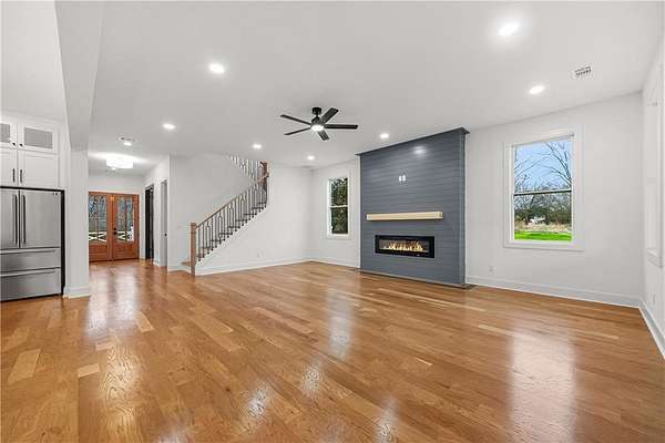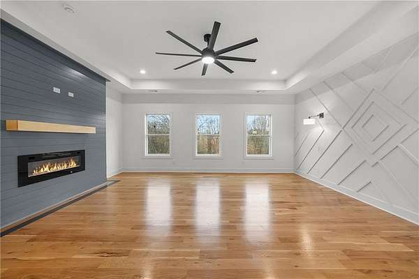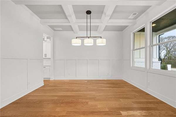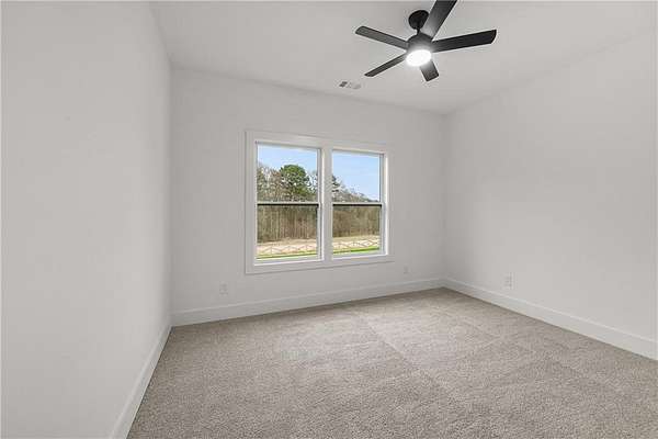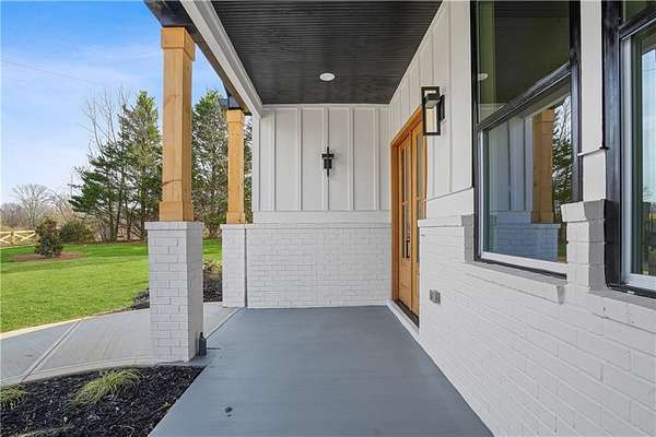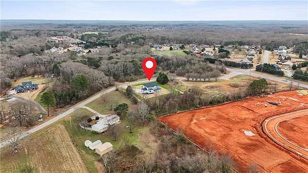 Stunning NEW CONSTRUCTION situated on a 1.5-acre FLAT LOT WITH NO HOA in a prime Hoschton/Braselton location, offering an ideal balance of PRIVACY, ELEGANCE AND CONVENIENCE. Located in a rapidly growing area surrounded by newer homes, shopping, and local amenities, this property provides the rare opportunity to enjoy a custom-home feel without HOA restrictions. From the moment you arrive, the home's transitional exterior design sets a refined tone, featuring board-and-batten white siding, brick accents, and raw cedar details. Inside, a spacious foyer welcomes you with a PRIVATE HOME-OFFICE to the left, enclosed by French doors and highlighted by a designer accent wall. To the right, an open FORMAL DININGROOM features a coffered ceiling, elegant lighting, and detailed wall molding. HARDWOOD FLOORS, 10-foot ceilings on the main level, and ABUNDANT NATURAL LIGHT create an open and inviting atmosphere throughout. The heart of the home is the expansive open-concept living area, anchored by a chef's kitchen with a blend of white and natural wood cabinetry, quartz countertops and backsplash, stainless steel appliances, and thoughtfully selected lighting and plumbing fixtures. The living room showcases a shiplap wall with an electric fireplace and an open staircase with iron railing, serving as a striking architectural focal point. The main level also includes a breakfast/keeping area, walk-in pantry, mudroom, a guest suite with walk-in closet and full bath, and a three-car garage, providing both comfort and functionality. Upstairs, 9-foot ceilings continue throughout. The luxurious primary suite features a spa-inspired bathroom with a soaking tub, large walk-in shower, double vanities, and a spacious walk-in closet with built-in shelving. Three additional secondary bedrooms each offer their own private full bath, while a large media room provides flexible space for a home theater, gym, or playroom. Step outside to the covered back porch overlooking the open, level backyard-ideal for entertaining or adding a future swimming pool. With thoughtful design, quality finishes, and generous space both indoors and out, this home delivers modern comfort and timeless appeal. Conveniently located just off Highway 124 near Gum Springs Park, Traditions Golf & Country Club, Gum Springs Elementary, West Jackson Middle School, and Publix, this property offers modern living with small-town charm in one of Jackson County's most desirable and fast-growing corridors.