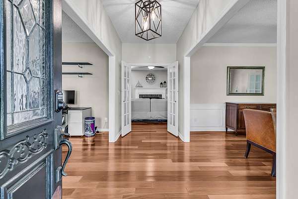 BACK ON MARKET AT NO FAULT TO SELLERS!! BUYERS FINANCING FELL THROUGH!! Welcome to this stunning all BRICK Colonial Style Home that blends timeless charm with modern amenities. House features 3369 Sqft, 4 bedrooms, 3.5 baths and has NO HOA! Sits on 2.37 secluded ACRES behind a private gated entry, this property offers true privacy, functionality, and luxury living! NEW FULLY ENCAPSULATED CRAWLSPACE!! The home's curb appeal is undeniable with its charming full-length FRONT PORCH, perfect for relaxing mornings or evening conversations. As you step through the front doors, you're greeted with beautiful wood floors that flow throughout the entire home. To the left, a versatile space currently used as an office could also serve as a workout room, playroom, or flex space. To the right, you perfect for entertaining. The heart of the home is the large family room with a cozy WOOD-burning fireplace, connected to a separate, spacious kitchen designed for both everyday living and entertaining. The kitchen boasts granite countertops, a large island, an Eat-in dining area, and abundant cabinetry and counter space! Nice sized separate laundry room with a wash sink! The FIRST FLOOR PRIMARY SUITE is a true retreat, offering a massive layout, extra-large walk-in closets, and a spa-like bathroom with dual vanities, tiled walk-in shower, soaking tub, and modern finishes.