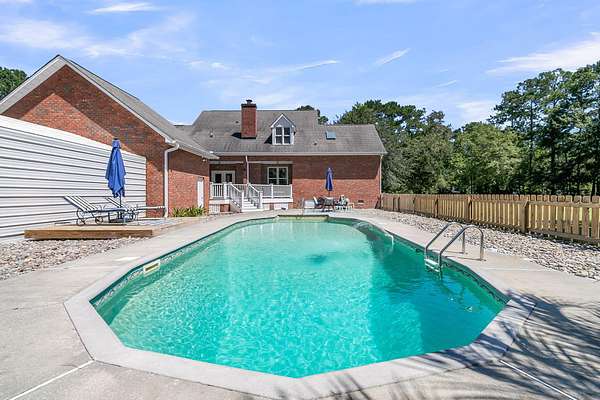 Outdoor living shines here: a large back deck with Premium Trex Wood and covered porch overlooking the SPARKALING INGROUND POOL, creating the perfect space for entertaining or unwinding in privacy! Pool has fencing all around it that is separate from the backyard. The property also includes a detached two-car garage, and spacious workshop/barn, and a chicken coop, offering endless options for hobbies, storage, or homesteading. Extra-long driveway for all your toys and most of the 2.37 acres are all cleared! Mature landscaping surrounding the entire property and property lines! This exceptional home offers privacy, acreage, luxury, and classic style - a rare find ready to welcome its new owners!
