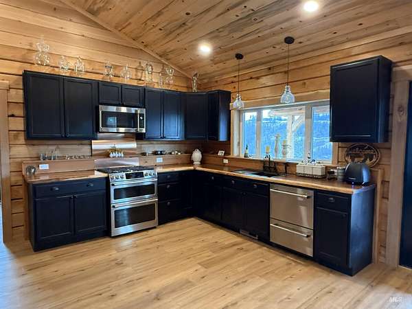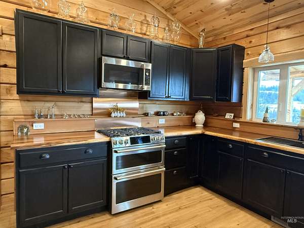 2024 Custom Built Cedar Log Home 3 Bed/2 Bath located outside of Harpster! You are in the heart of Idaho County for the outdoor enthusiast! Walk into the warmth of this 1360sf home w/Blue Pine tongue & groove & cedar logs throughout, great room w/vaulted ceilings, beautiful wood countertops, stainless steel appliances. This house was built with quality materials and craftsmanship inside and out! Cedar Logs included for 24x22 garage to be built. Gardner's dream with a newly built 24X48 High-Tunnel Greenhouse, 27K Generac propane backup generator, automatic privacy gate, 440 electric panel for future buildings, shared well agreement with 3000 gal. cistern. Plenty of usable land to pasture animals or add additional buildings or shop. Minutes from the national forest or Clearwater River! An abundance of wildlife & the views are breathtaking! Motivated seller! Give us a call to schedule a showing!