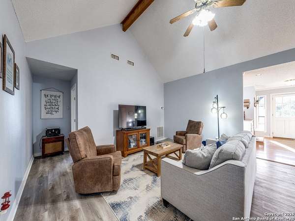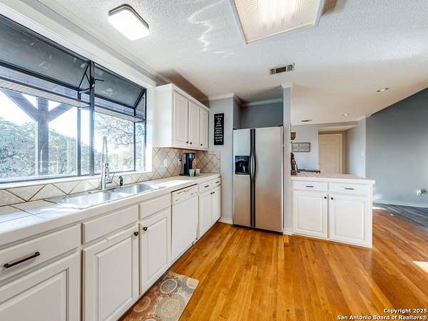 Discover the perfect blend of tranquility and convenience in this quaint Texas Hill Country home, ideally located off Sisterdale Hwy-just 25 minutes from Fredericksburg and downtown Boerne. Just 10 minutes to Luckenbach. Nestled on 3.32 fully fenced acres, this property offers unparalleled long-range views, majestic oak trees, and no HOA restrictions! Step inside this updated country home, featuring a newer roof (2017), newer HVAC system (2020), fresh paint throughout, and stylish vinyl plank flooring in the living and dining areas. The spacious kitchen boasts updated appliances, a walk-in pantry, and a picturesque window overlooking the countryside. The primary suite is a true retreat, offering a large sitting area and a renovated en-suite bathroom. A secondary bedroom and full bath downstairs provide convenience, while the upstairs bedroom offers flexible space for an office, guest suite, or game room. Outside, enjoy covered parking with a carport and storage closet, plus ample room for a chicken coop, large garden, or additional outdoor living space. Experience the peace and quiet of country living while staying close to top Hill Country destinations. When using GPS be sure to use "Whitworth Drive"...this property is off of Sisterdale Highway (FM1376)