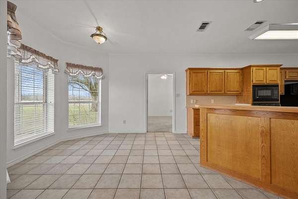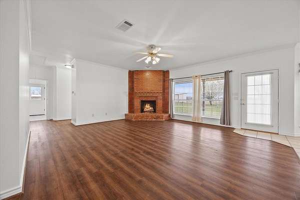 Step inside to an open floor plan where style meets function. The home is adorned with luxurious vinyl plank flooring throughout the main living areas, providing durability and charm, while plush carpet adds warmth to the bedrooms. The heart of the home features a brick wood-burning fireplace with a gas starter, perfect for cozy evenings. The spacious kitchen is a chef’s dream, equipped with a gas cooktop, built-in microwave, and oven, making meal preparation a joy. Retreat to the expansive primary suite, a true haven with his and her closets, a garden tub, and a walk-in shower that promotes relaxation and ease. The exterior of this property is equally impressive with front and back covered patio for relaxing. The property includes a three-bay shop, ideal for car enthusiasts or as a versatile space for hobbies and storage. Whether you are looking for a peaceful retreat from city life or an expansive property to cultivate your dreams, this Leonard homestead offers a rare opportunity to live amidst nature’s splendor while enjoying modern amenities. Bring your animals and call this property Home!