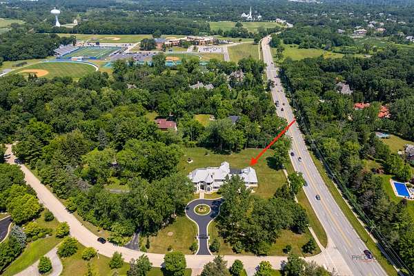 Discover a truly extraordinary residence where luxury meets distinction in this magnificent three-story, 6-bedroom, 8.2-bath royal retreat, set on nearly two acres in prestigious Lake Forest, known as The Hidden Museum. Home to a museum-quality art collection, this architectural masterpiece has never been used as a full-time residence and remains in mint condition. Enter through a gated circular driveway and be greeted by timeless elegance, exceptional millwork, and a combination of gleaming marble and hardwood flooring throughout. Designed for both entertaining and refined living, the home features a breathtaking great room with soaring 40-foot ceilings, a grand fireplace, walls of windows that fill the space with natural light, and access to the expansive grounds. A 4-person elevator provides seamless access to all floors. The main level boasts two kitchens-one currently in use and another potential main kitchen intended for the green room adjacent to the great room. The first-floor primary suite is a true retreat, complete with a spacious walk-in closet, a serene sitting room, and a luxurious bathroom with dual vanities, a walk-in shower, and space for a central soaking tub. Upstairs, you'll find three generously sized en-suite bedrooms, a loft, and a versatile bonus room. The third level adds even more flexibility with an additional en-suite bedroom and bonus space, ideal for guests or creative uses. The fully finished basement is a showstopper, featuring a full kitchen, a spa-style bathroom, and an unused indoor pool with room to create a full wellness retreat or entertainment zone. Beyond the main residence, a coach house offers a 4-car garage and private living quarters with a bedroom suite above, ideal for guests, extended family, or staff. An additional wing, connected by a breezeway, offers two more rooms and a full bath, while a separate pool house further enhances this estate's rare offering. Situated on a massive corner lot, the flat, leveled backyard is a blank canvas ready to become your dream outdoor oasis. Ideally located near the Metra station, shopping, dining, and scenic lakeside attractions, this home offers unparalleled space, privacy, and potential. A rare opportunity to own one of Lake Forest's most unique and prestigious estates.