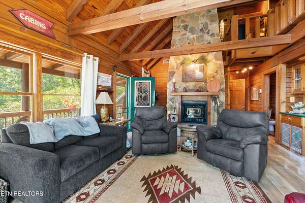 FIRST TIME ON THE MARKET this stunning custom-built cabin is perched in the sought-after NORRIS SHORES subdivision where lake life abounds with spacious lots, luxury homes, & community amenities including a club house, boat ramp, & docks rentals when available! You can choose to stay secluded enjoying your 10.99-acre lot or join in on the community fun throughout the year! The location is perfect with fishing, boating ATV trails, marinas, restaurants with live music, & much more nearby! The cabin has breathtaking lake views from inside the home & on the relaxing porches! The owners spared no expense during building with a keen eye for attention to detail inside & out! Stones gathered from the property were used for gorgeous accents throughout the home & fireplaces. As your guests enter, they are greeted with lake views in the open concept living space. The main level offers the main bedroom with ensuite, kitchen, dining, living room, half bathroom, laundry, & porches. The second story has a loft with views, 2 bedrooms, & a full bathroom. In the walkout basement you have a 2nd living space with a bedroom, bathroom, living/bonus room, full kitchen, & laundry/utility room. The 2-story detached garage & workshop offer lots of storage & potential for another separate living quarters. Whether you're a car enthusiast, wood worker, or hobbyist of some fashion, this property offers the space to fulfill your heart's desires! Atop the property borders Woodside Lane where you can stroll to a gazebo in a serene setting to admire more pristine views! When the leaves fall, you have gorgeous views from 3 sides of this gathering place! Check out the subdivision's website for fun community events, restrictions, & more! Call today to schedule your private showing. Buyers shall verify all information.