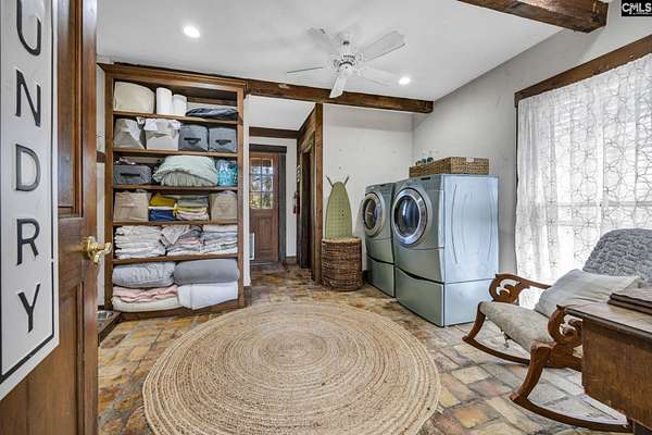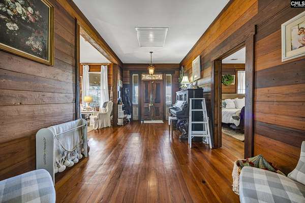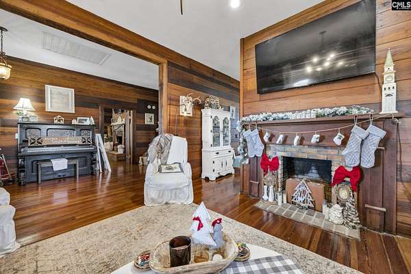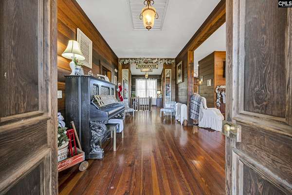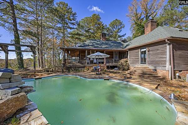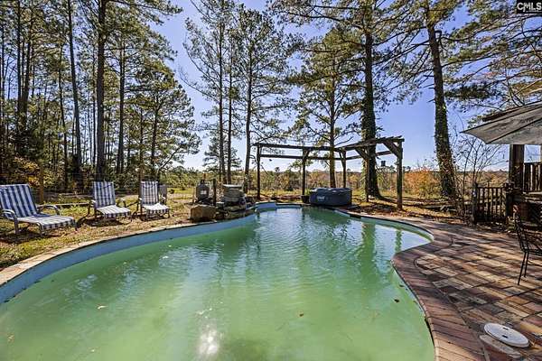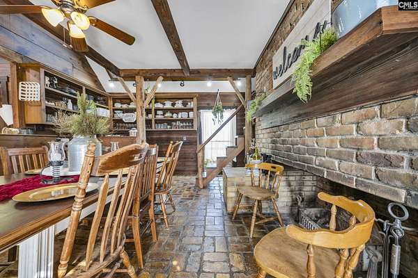 Set on 80 picturesque acres with 1,750 feet of frontage along Little River, plus two ponds and a creek, this remarkable estate offers the rare chance to own a piece of history- beautifully updated for modern living. The main home, originally built in the 1800s and reassembled here in 1985, exudes warmth and craftsmanship with cedar siding, heart pine walls and floors, and bricks thoughtfully reclaimed from the old Richtex brick mill next door. Ten fireplaces bring character and charm throughout the home, each one with its own story to tell. The main level features a spacious primary suite with a double-sided fireplace and a huge walk-in closet, along with a small additional bedroom currently serving as a laundry room. Upstairs, a cozy loft offers flexible living space. The lower level, renovated in 2022, includes three additional rooms used as bedrooms, two full bathrooms, and a large great room with a wet bar. French doors open onto a charming brick patio overlooking the property. Outside, the beauty continues with a gunite pool and waterfall, a detached two-car garage/workshop, and a wraparound porch perfect for slow mornings and sweeping views of the land. Approximately 20 acres surrounding the home are cleared, featuring a garden, fenced area for animals, and plenty of room for a pasture. The historic brick mill next door is also available for purchase-ask for more details and a video tour! Whether you dream of a homestead or a private retreat, this property offers endless possibilities, all just a short drive from Blythewood, the developing Scout Motors site, downtown Columbia, Lake Murray, and charming downtown Winnsboro. Disclaimer: CMLS has not reviewed and, therefore, does not endorse vendors who may appear in listings.