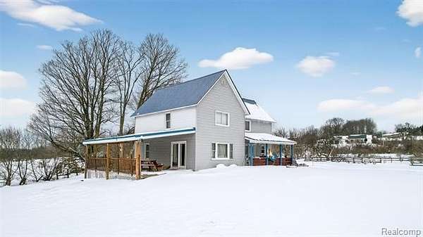 Take a look at this wonderful West Branch property, ready for you to call home. Set on 12.17 beautiful acres, this property offers breathtaking views in every direction. Step inside to a spacious kitchen featuring wood cabinetry, a large island with plenty of storage, and an adjacent dining area, perfect for entertaining friends and family. Notable features include two large covered porch areas, ideal for relaxing and taking in the peaceful surroundings, along with a large pole barn with four horse stalls and a fenced area that allows horses to roam comfortably. You'll also enjoy a charming mini orchard with apple, cherry, and pear trees, creating a peaceful setting to enjoy year-round, along with a chicken coop for those looking to embrace country living. A scenic pond adds to the charm and is frequently visited by local wildlife. Recent updates include an artesian well, new metal roof, siding, and windows, all completed in 2020. The home also offers peace of mind with a newer forced-air furnace, all new appliances, and updated electrical and plumbing, providing added convenience and flexibility for everyday living or entertaining.