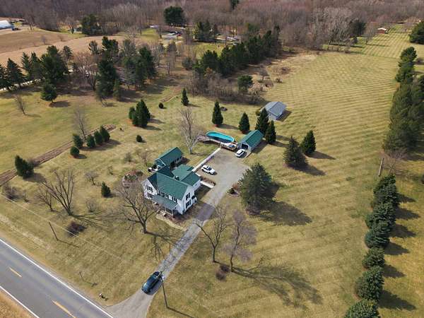 Enjoy peaceful country living on 5.6 acres with room to spread out, multiple outbuildings, and space to work, relax, or entertain. Just about 20 minutes from Ann Arbor. This meticulously maintained 4-bedroom, 2-bath home offers 2,480 sq. ft with hardwood cabinets, hardwood floors in the kitchen and dining area, and stainless steel appliances updated the past few years and bathrooms updated in recent years. The property includes four outbuildings, including a finished 16'x28' building with insulated walls, hardwood flooring, and a mini-split for heating and cooling, ideal for a home office or studio. Major updates include new siding on entire house, new roofs on the home and all four outbuildings within the past four years, and a new hot water heater in 2025. Additional highlights include a whole-house generator (2022), asphalt driveway, welcoming front porch, low-maintenance hydrangea landscaping, and an above-ground pool with surrounding deck. Very clean and well cared for throughout.