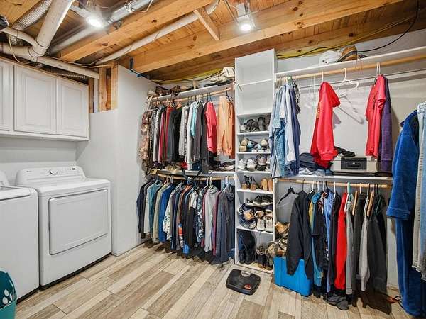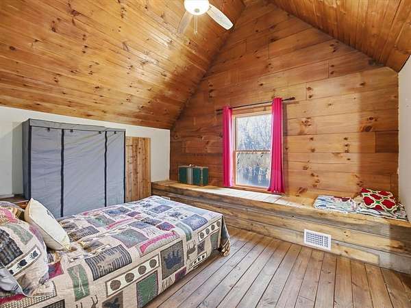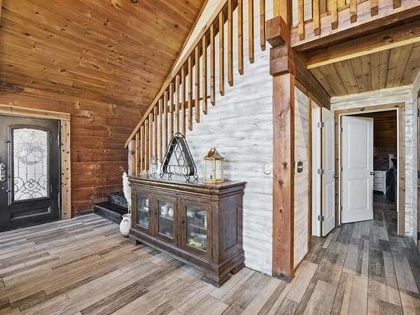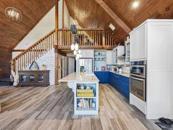 - Decorative Lighting, Kitchen Island, Natural Woodwork, Open Floorplan, Vaulted Ceiling(s), Walk-In Closet(s)