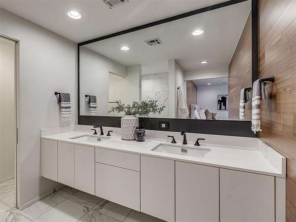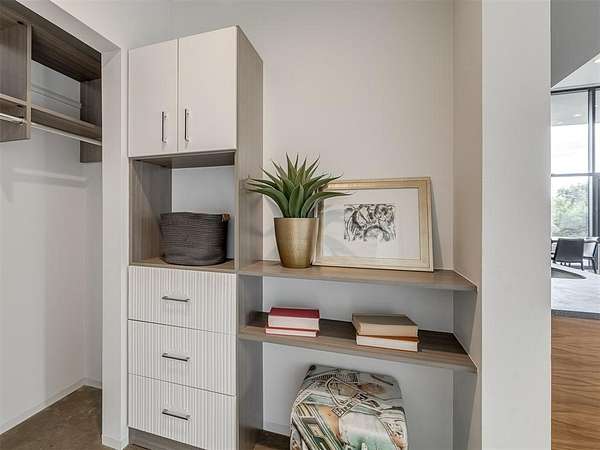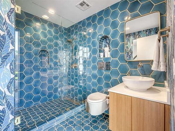 The chef's kitchen showcases Miele and Thermador appliances, a Galley workstation sink, built-in coffee system, tons of storage and a wine fridge. Natural light fills the open living area, perfect for entertaining or quiet evenings. Designed as a three-bedroom floor plan or a two bedroom plus a home office/den--each room enjoying access to its own sleek modern bath.