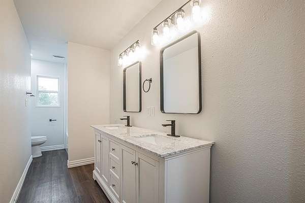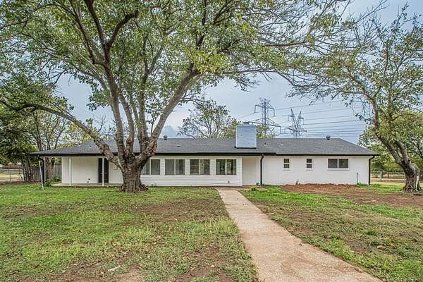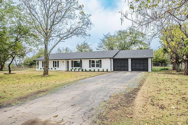 Welcome to this completely renovated ranch home, set on just over 2 acres of open land offering room to grow, play, or even bring your chickens! Every inch of this property has been touched -- from the fresh exterior paint to the modern interior finishes. As you enter, you're greeted by two spacious living areas that can easily be used as separate spaces or flow together for an open-concept feel. The family room features a cozy wood burning fireplace and connects seamlessly to the eat-in kitchen. The kitchen boasts new gray shaker cabinets, granite countertops, a farmhouse sink, a kitchen island with breakfast bar, pantry, and bay windows that bring in plenty of natural light. Off the kitchen are two carpeted bedrooms and a fully updated guest bath featuring new tile, cabinetry, and hardware. The garage is conveniently located off the kitchen as well. Toward the front of the home is an additional bedroom with access to another full bath--also fully renovated with dual sinks, corian counters, and a tub-shower combo. The spacious primary suite offers a private retreat with a sitting area, two closets (including a large walk-in), and a luxurious ensuite bath complete with a soaking tub, separate shower, and built-in shelving--all newly updated with modern finishes. Enjoy the enclosed sunroom year-round--perfect for relaxing during Texas summers or cool winter days. Outside, you'll find endless opportunities with plenty of space to expand, add a pool, or enjoy outdoor living. The concrete pad near the home is already equipped with electricity, ideal for future projects or gatherings. This move-in ready property is the perfect blend of country charm and modern comfort.