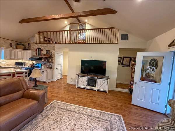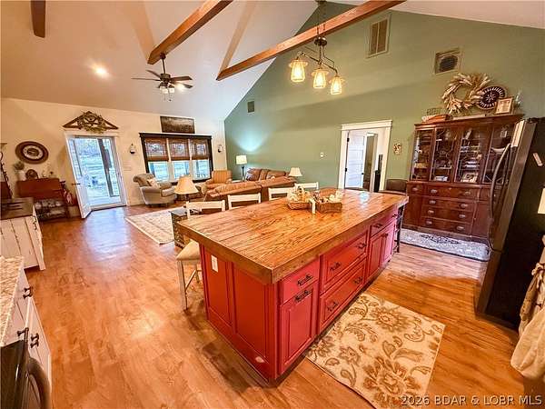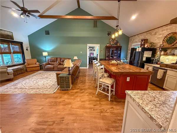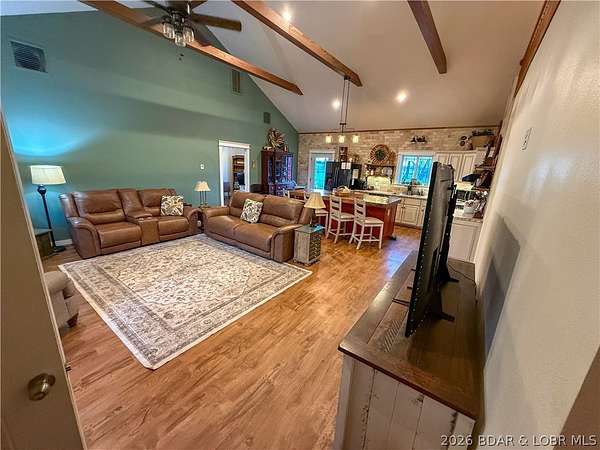 Welcome to this stunning newer-built ranch home, completed in 2020, offering the perfect blend of modern comfort & rustic charm! Step inside to a spacious open-concept layout featuring a large living room, kitchen, & dining area-ideal for entertaining or everyday living. Gorgeous wood beams stretch across the ceiling, adding warmth & character throughout the main living space. The kitchen is a true showstopper with a large, beautiful wood-top island that provides ample space for cooking, gathering, & hosting. This thoughtfully designed home offers incredible flexibility with two primary bedrooms, each with its own private bathroom, plus an additional bedroom and full bathroom on the main level. Upstairs, the loft serves perfectly as another bedroom, guest space, or home office. Outside, you'll find everything you need and more! Enjoy a fenced yard-perfect for pets or play-along with a covered front porch for relaxing mornings and a back patio ready for evening get-togethers. The property also features a shop with a gravel floor, an RV/camper hookup, an attached 1 car garage, and the added bonus of solar panels to help with energy efficiency. Schedule a showing before its gone!