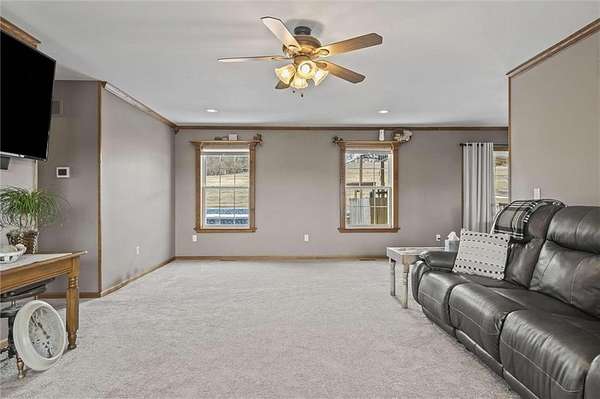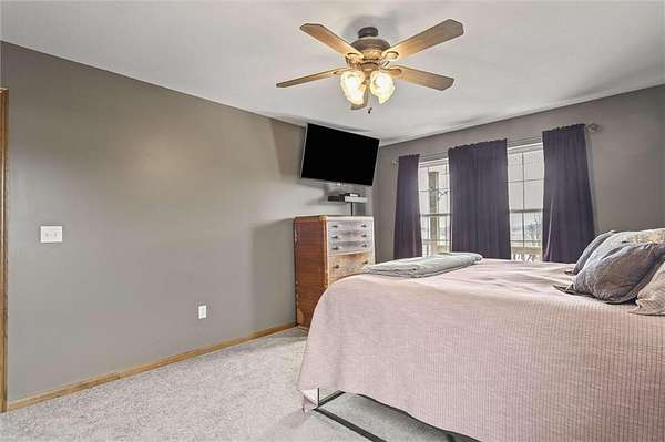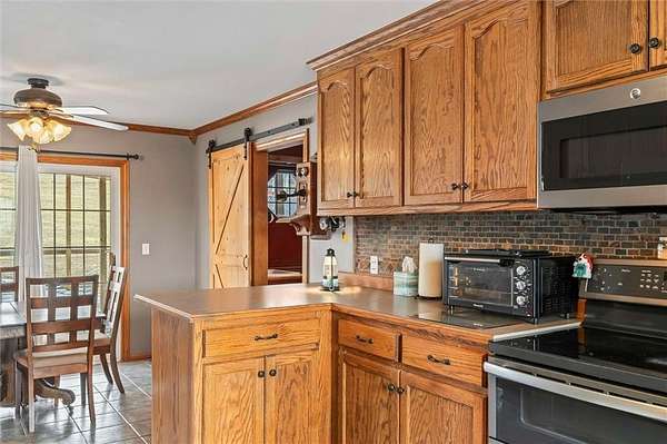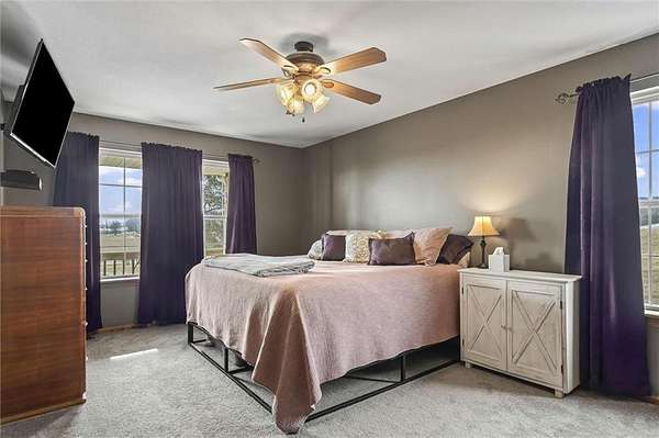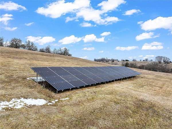 Spacious 4-bedroom home with 2 additional non-conforming bedrooms, offering 4 full bathrooms, all situated on 14 beautiful acres. Enjoy true country living with wildlife everywhere, from peaceful mornings to quiet evenings surrounded by nature. Inside, you'll find brand new carpet and fresh interior paint, giving the home a move-in-ready feel. Enjoy the convenience of both main-floor and second-floor laundry, ideal for busy households. The home features a central vacuum system for easy maintenance and efficiency. Paid-off solar panels will be transferred at closing, providing long-term energy savings. Step outside to relax or entertain with an above-ground pool and covered deck, perfect for summer gatherings while enjoying scenic views. The walkout basement includes two non-conforming bedrooms and a full bathroom, providing flexible space for guests, a home office, or recreation. A large 30x46 outbuilding/garage offers endless possibilities for storage, hobbies, or equipment. The property also includes a storm shelter with built-in shelving for added safety and organization. A huge attic storage area above the garage is easily accessible through the east bedroom closet, offering abundant additional storage. Whether you're looking for space, privacy, abundant wildlife, or energy efficiency, this property truly checks all the boxes-country living at its best with modern conveniences. All measurements, square footage, and property details are approximate; buyer to verify all information.