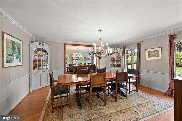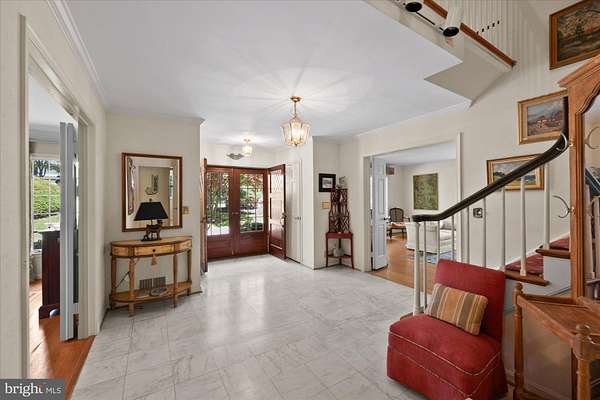 A truly special offering. This graciously proportioned, classic all brick, and long loved home is perfectly tucked away on idyllic Skipwith Lane. A circular driveway welcomes visitors to nearly 3 acres of thoughtfully designed gardens, curated over decades, with a pool and unmatched pond views. 11304 Skipwith Lane awaits its next residents to reimagine it, what a rare find. Main Level Features: Classic, center hall design. Elegant, marble floored reception area; hardwood floors; oversized (22'5" deep) Living Room with incredible natural light via expanded bay window and double windows; entertainment sized Dining Room with built-in corner cabinets; open, eat-in Kitchen with double French doors leading to patio; expansive Family Room with fireplace and double French doors to stunning Sunroom with light on 3 sides, skylights and pool views; Bedroom Suite (Bedroom #5) with Full Bath #3 with tub; Laundry/Mud Room; entry to 2-car, side load Garage; discreetly placed, large Powder room Upper-Level Features: Hardwood floors and large upper landing; impressively proportioned Primary Suite with Full Bath (tub), walk-in closet, large Sitting Room/Office with fireplace and sliding doors to deck with outstanding pond and garden views; Bedroom #2 with large closet and windows on 2 walls; Bedroom #3 with large closet and rooftop deck views; Bedroom #4 with walk-in closet; Full Bath #2 with tub and linen closet; hall linen closet Lower-Level Features: Large (27'4"x22'3") finished area ; huge storage/utility area with walk up egress; large, unfinished crawl space Other Features: Brick patio punctuated by the beautiful Pool with brick paver surround; extensive, mature perennial gardens anchored by established specimen trees, unobstructed pond views; public water; septic; oil heat and electric AC; partially fenced