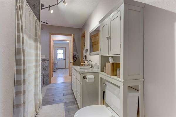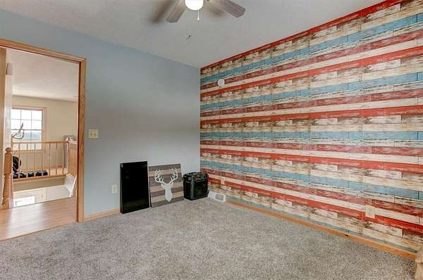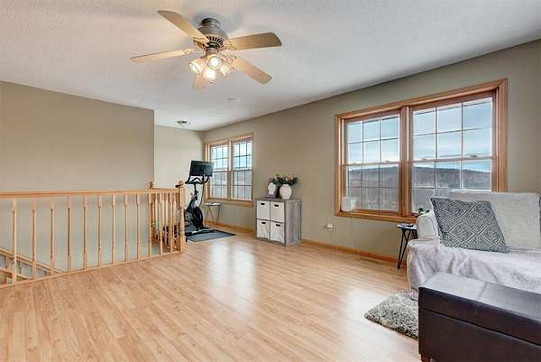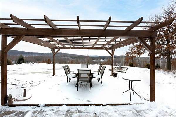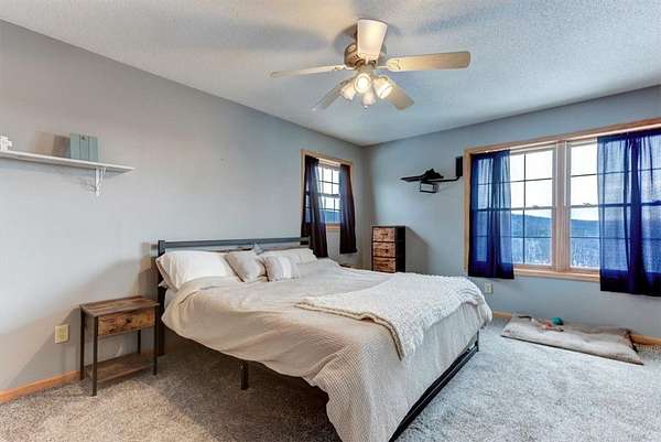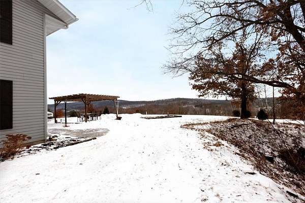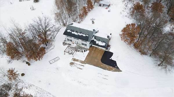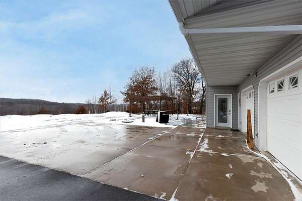 Hunters and outdoor enthusiasts-this is the one you've been waiting for! Enjoy incredible views across 18.84 acres of mixed woods and open fields. The home sits elevated above the land, offering complete privacy, and is accessed by an asphalt driveway that winds up to the house. This spacious 5-bedroom, 3-bath home also includes a dedicated office. The main floor features a massive kitchen with a large island and walk-in pantry, a comfortable living room, full bath, office, bedroom, and utility room. The home offers gas forced-air heat and central air, and is already stubbed for in-floor heat. Upstairs you'll find four additional bedrooms, a full bath (walk-in tile shower and jacuzzi tub), a laundry room with a half bath, and a huge family room-perfect for gatherings or relaxing. The attached garage is insulated and heated for year-round comfort. Just off the kitchen, French doors lead to a stamped stone patio with a pergola-an ideal spot to unwind and take in the breathtaking views. There's also plenty of room to add a shed or additional garages to suit your needs.