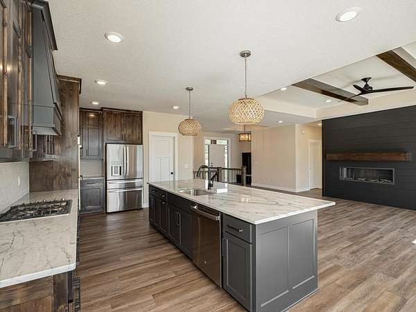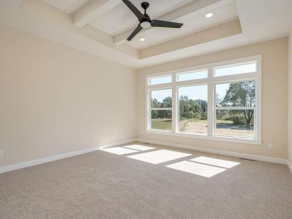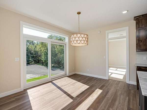 Don't miss this incredible opportunity in a brand-new acreage development! This custom-built rambler by SW Wold Construction sits on a spacious 3.27-acre lot with LP Smart siding throughout, open space, and tree-buffered privacy. The home features an open-concept layout, 9' ceilings, vaulted beam accents, and a large living area with an oversized, and an electric fireplace. The kitchen includes Knotty Alder cabinets, granite countertops, and gourmet stainless-steel appliances. The luxurious primary suite offers a ceramic tile bath, walk-in shower, freestanding tub, and dual vanity. Two more bedrooms, a full bath, and a walkout lower level ready for future finishing complete the home. Enjoy outdoor living with a covered front porch, and an oversized 4-car garage. Multiple floor plans available—secure your lot today!