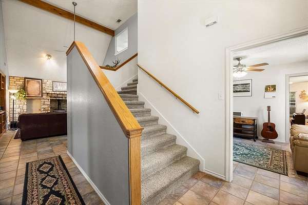 Welcome to this spacious ranch style home featuring a terraced limestone entry that creates a warm, inviting arrival. The home has five bedrooms, two full bathrooms, and two half bathrooms. With over 2800 square feet spread across two stories, this property offers plenty of room for comfortable living. Situated on a 1.67-acre wooded lot, the home boasts a fully fenced perimeter, including a separate dog run for your pets. Enjoy multiple living spaces with two family rooms and a cozy sitting room. The property also includes a workshop equipped with electricity, heating and air conditioning via mini splits, and WiFi, perfect for hobbies or remote work. The workshop has a separate enclosed area that can be used as a man cave, living area, or separate office area. Workshop is 30 feet by 40 feet with interior office that is 19.5 feet by 11 feet.