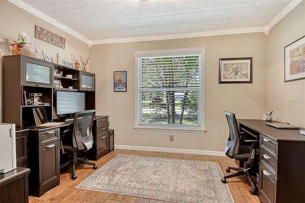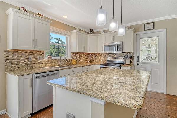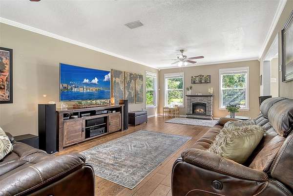 Nestled on a picturesque 1.7-acre corner lot in the sought-after Mill Creek Community, this beautifully maintained 3-bedroom, 2.5-bath home offers 2,076 sqft of thoughtfully designed living space. Enjoy peaceful water views from the enclosed back porch, relax in the Florida sunshine on the expansive deck, or gather around the firepit for unforgettable evenings under the stars. With mature trees, a fenced yard, and no rear neighbors, privacy, peace and tranquility awaits --and yes, there's plenty of room to build your dream pool! This bright and airy floorplan has an abundance of natural light and showcases scenic views from nearly every window. The kitchen is a chef's delight, featuring granite countertops, a tile backsplash, center island, walk-in pantry, and brand-new appliances (2024). A versatile family den--currently used as an office--can easily serve as a 4th bedroom or in-law suite. Upstairs, the spacious primary suite offers tranquil water views, his and her walk-in closets and an ensuite bath offering a garden tub and walk-in shower. With two additional bedrooms and an updated house bath, a utility room and spacious double garage makes it the perfect family home. Major updates include dual AC systems (2018) and a brand-new roof (2025), giving you peace of mind for years to come. With no CDD fees and a low HOA of just $535/year, this home combines value with lifestyle. With easy access to the Ellenton Outlet Mall, UTC, I-75, dining, shopping, and the stunning Gulf beaches--this is Florida living at its finest!