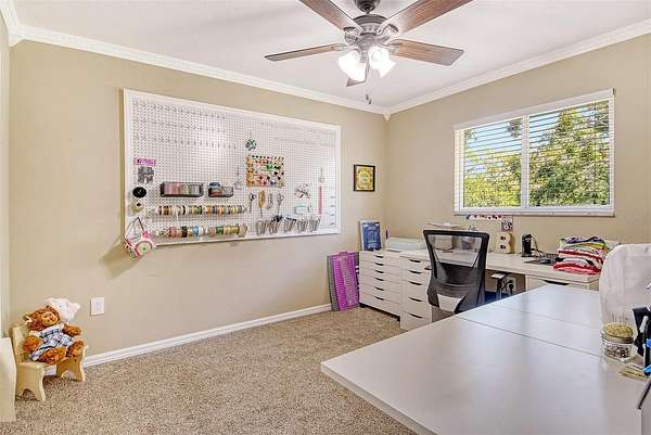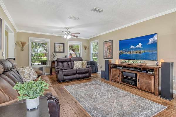 - Ceiling Fans(s), Crown Molding, Eat-In Kitchen, Solid Surface Counters, Walk-In Closet(s)