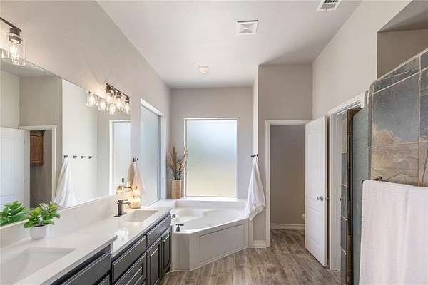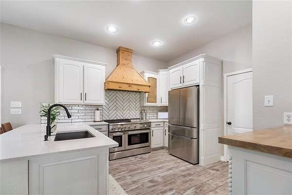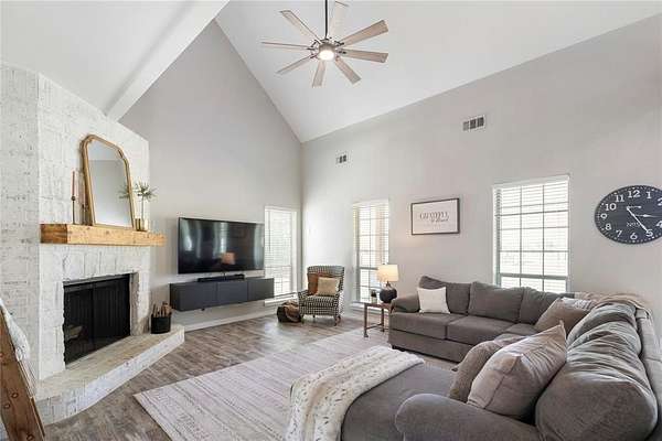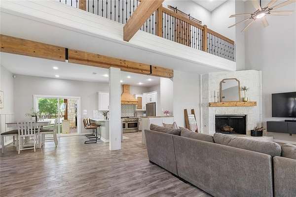 OPEN SAT. 4-11 FROM 12-2 *NEARLY 2.5 ACRES, NO HOA, PRIVATE ACREAGE FOR LIVESTOCK AND HORSES, RENOVATED HOME!!* Unique opportunity to create a country living environment while having all the conveniences of the city close by. This beautifully remodeled French -style farmhouse features 4 bedrooms, 2.5 bathrooms, and is gracefully nestled on nearly 2.5 sprawling acres in the heart of Haslet. Enjoy the sunrises and sunsets on your wrap around porch around the entire home. Set behind a private gated entrance, the home features an extra storage shed, an office or shop building, a concrete pad used for recreation or storage, a tree house, a zip line, playground area, and space for your RV, boat, and other outdoor toys. The expansive grounds provide endless possibilities. The inside impresses with soaring ceilings and custom finishes. Fall in love with the beautifully updated kitchen that features crisp white cabinetry with elegant detailing, sleek quartz countertops, and a herringbone tile backsplash. The showpiece of the kitchen is the stainless steel professional-grade gas range with double ovens, complemented by a custom wood vent hood that brings a designer touch and warmth to the space. The oversized kitchen peninsula offers additional prep space and seating, complete with a deep undermount sink and modern matte black faucet. Recessed lighting and durable wood-look flooring complete the space, making this kitchen ideal for both everyday living and entertaining. Spa-like primary bathroom features a large dual-sink vanity with new quartz countertops, modern fixtures, and a full-width mirror that enhances the bright, open feel. Unwind in the relaxing corner soaking tub or step into the oversized walk-in shower with double shower heads. Oversized garage with extra tall ceilings. Close to Alliance Town Center, shopping, dining, major roadways, and zoned for Northwest ISD, this property combines the serenity of acreage living with everyday accessibility.