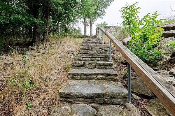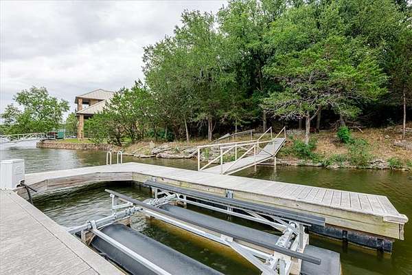 Discover the perfect blend of privacy and lake life on this beautiful PK Lake waterfront lot in Bobwhite Bluffs. This half-acre property offers a natural elevation transition from the road to the shoreline, adding character and a tucked-away feel. The flat upper level offers an easy-build option. Follow the charming stone steps down to a shaded waterfront patio sitting area with stone landscaping features -- the serene setting is ready to be polished into your own lakeside sanctuary! A private dock equipped with ladder and Hydrohoist lift is already in place, making water access ready and easy. Surrounded by quality homes on a quiet street, this inviting, tree-framed lot is ready for your vision and creativity to build a truly special retreat.