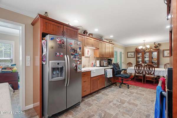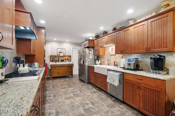 Multi-Generational Masterpiece in Farragut View - Backs Directly to Farragut High! Welcome to this incredibly rare find in Knoxville's highly sought-after Farragut View subdivision. Situated on a sprawling 1.51-acre beautifully terraced lot that goes all the way to the back of Farragut High School, this property offers over 3,100 square feet of versatile living space. Featuring a complete, separate dwelling on the lower level, this home is an absolute dream for multi-generational living, a teen suite, or income potential! Main Level Living (1,634 sq. ft.) The inviting upper level features an open concept kitchen and dining room combination just off the main living room. The kitchen is beautifully updated with granite countertops, stainless steel appliances, a farmhouse sink, and a gas stove. Primary Suite: A spacious retreat featuring a large walk-in closet and a beautifully appointed en-suite bathroom with a walk-in shower. Second Bedroom & Bath: A generously sized second bedroom (currently utilized as a charming pine-paneled craft room) with a large closet. The hall bath is a full bathroom featuring a tub/shower combo. Outdoor Entertaining: Step out from the kitchen's laundry room to a gorgeous screened-in back porch and an adjoining deck equipped with a dedicated gas line for your grill. Lower Level Living Quarters (1,544 sq. ft.) The lower level is a fully self-contained home of its own, complete with a cozy fireplace and its own private screened-in porch. Rooms: Three full bedrooms and one full bathroom (tub/shower combo). Full Kitchen: Fully equipped with a range, refrigerator, dishwasher, microwave, and garbage disposal. Independent Laundry: Features its own dedicated laundry room with full hookups. Exterior Highlights & Premium Upgrades This home has been meticulously maintained and updated with major investments already taken care of for the next owner. Flooring throughout the home is a tasteful mix of tile, hardwood, and comfortable carpet. Premium Roof: Brand new metal roof designed to look like architectural shingles (Installed Nov 2025). Energy Efficiency: Newer energy-efficient windows installed throughout (2016) and updated interior doors. Double Appliances: Both levels feature their own complete set of appliances (refrigerators, ranges, microwaves, dishwashers, and garbage disposals). Garages & Storage: A detached two-car garage complete with a workshop area, plus an additional detached storage building. The Grounds: 1.51 acres featuring a spectacular, deeply terraced backyard offering endless possibilities, incredible privacy, and unbeatable access to Farragut High. Homes with two complete living spaces on acreage in this school district do not last long. Schedule your showing today!