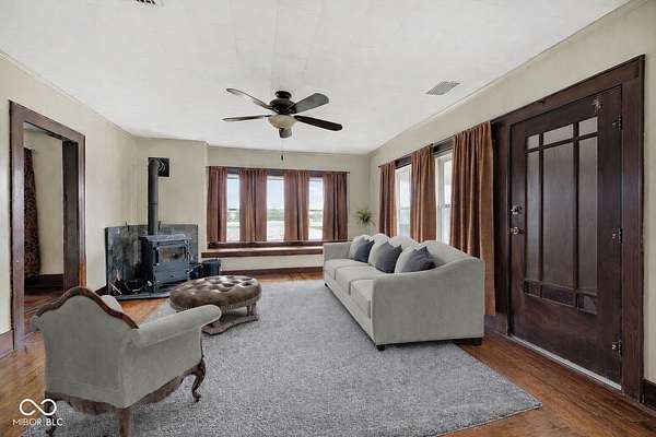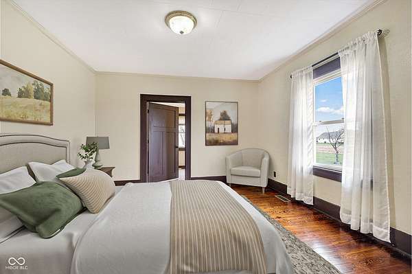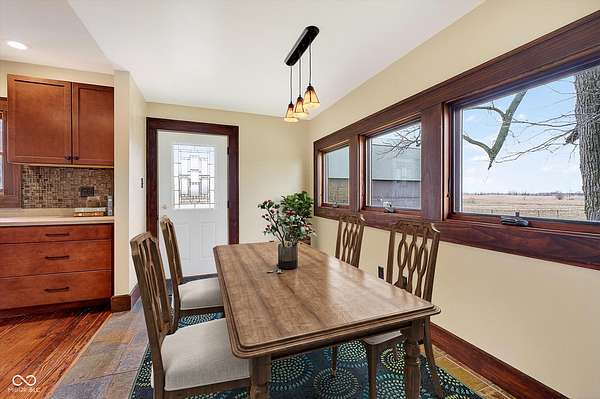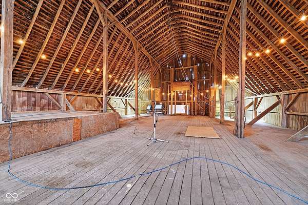 Discover a rare opportunity to own a perfectly blended country estate offering timeless old-world craftsmanship combined with thoughtful, modern updates. Situated on a private 48-acre setting, this property features 45 +/- acres of productive, tillable farmland while maintaining close proximity to Zionsville, Westfield, and Sheridan. The heart of the farm is a stunning 60x40 original timber frame barn, ideal for a workshop, studio, livestock, entertaining, or extensive storage. Inside, enjoy the historic woodwork, a refined kitchen with maple cabinets, quartz/stone countertops, and tile backsplash. This home offers versatility with a main-level room that can function as an office, sitting room, or bedroom. Upstairs, the expanded primary suite features a generous walk-in closet and a connected bathroom which could transition to provide another bedroom on the upper level with some creativity. Relax on the welcoming front porch or enjoy quiet evenings on the back patio overlooking your private oasis.