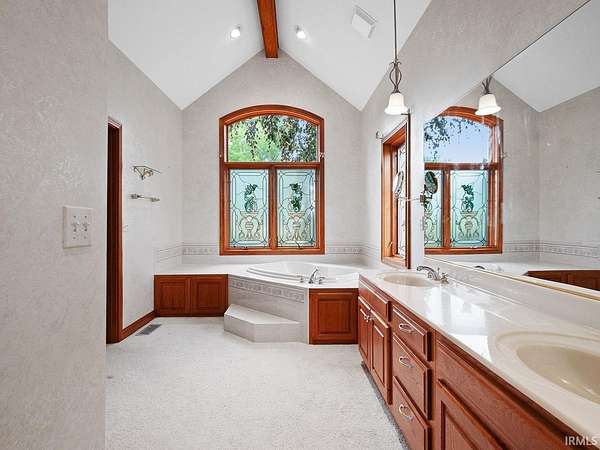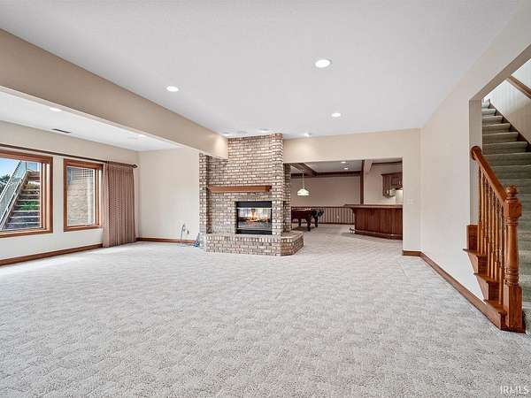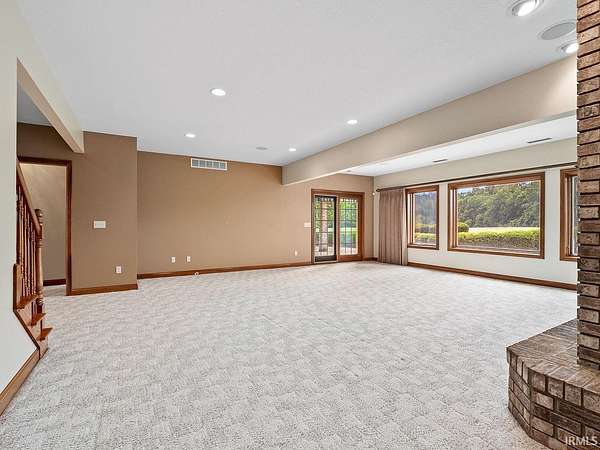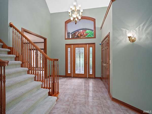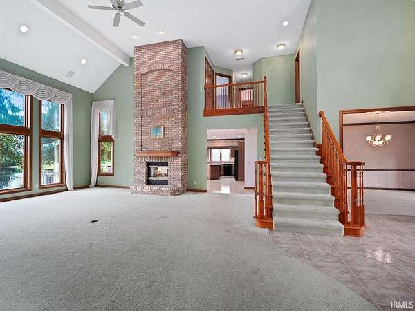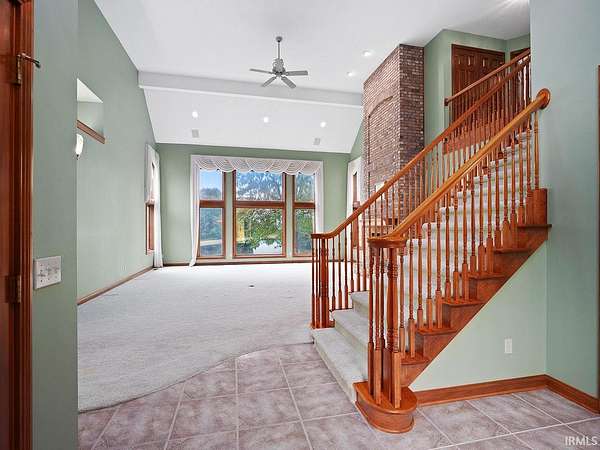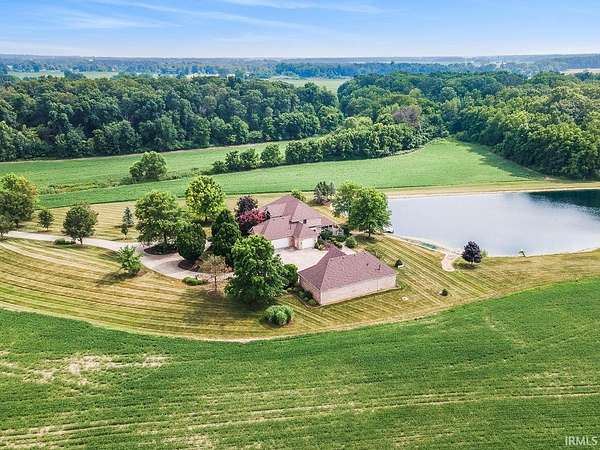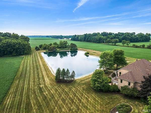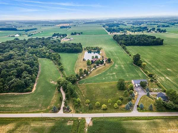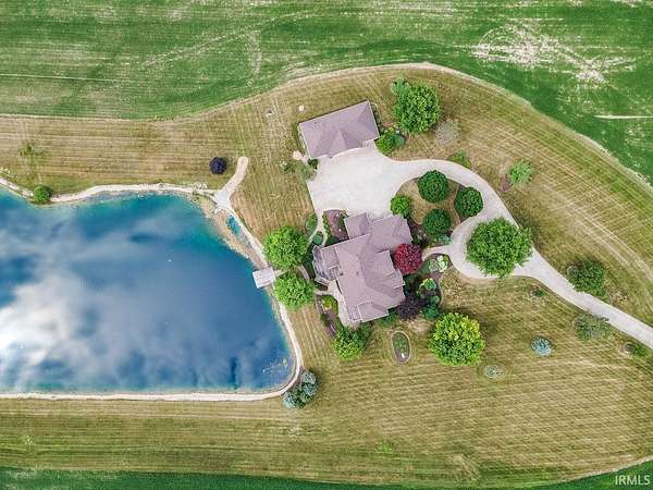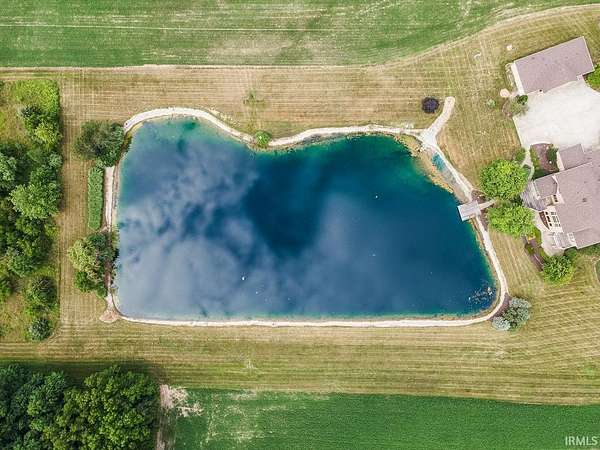 Dream sanctuary on the heart of almost 30 acres near Carroll outside Fort Wayne city limits just north of Dupont. Built like a fortress by Star Builder and Larry Lenagcher with 3 foot wide 6 panel hardwood doors, 5/8" thick drywall, floors glued AND screwed to all joists. Bordered on 3 sides by farm ground and located in Northwest Allen County School district. Great proximity to US 30 going west towards Columbia City and Warsaw. The 5,200 square-foot house features an open floor plan and expansive windows all over to enjoy the natural setting in all seasons. Highlights include large great room with view of the 2 acre pond ripe for fishing enthusiasts, eat-in kitchen with island and plenty of storage, dining room, oversize main floor bedroom with walk-in closet space and expansive bathing area, 3 upstairs bedrooms with 2 full baths and a large walk-in attic for tons of personal property storage. Relax and or entertain friends on large deck,finished lower walk-out level with plenty of room for kitchen, billiards and home office. Do I hear multi-generational living ? New roof installed on home and outbuilding June 2025. This rare find blends rural tranquility with modern conveniences alongside with an all brick 57 x 28 4 car garage with 1/2 bath and floored attic. From front door entrance to first entry onto property you will be taken in by this jaw-dropping expansive outdoor space and peaceful rural surroundings. You absolutely must walk around the property in its entirety to appreciate all it has to offer. Ideal layout for multi-generational living and outdoor recreation including swimming and fishing in the private lake. Exceptional landscaping ready for your nurturing touches. Make sure to watch both branded and unbranded video reels !