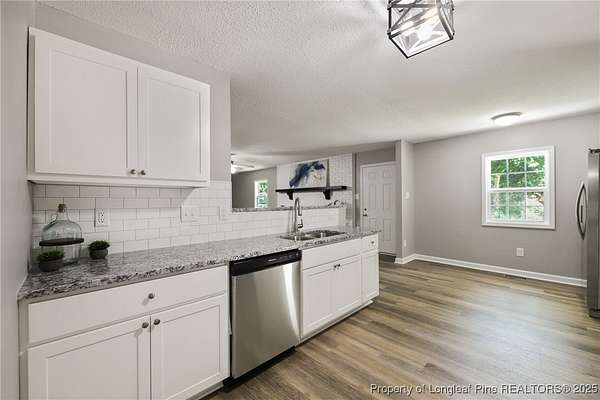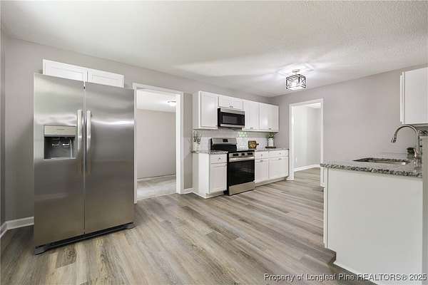 A hidden paradise awaits you here! Come visit this renovated property for some county living on over 2 acres with lots of privacy to relax or entertain. Convenient to Fort Bragg, I-95, and Fayetteville. We can give you so many reasons to love this remodel: all new roof, windows, bathrooms, kitchen, fixtures, some plumbing, exterior doors, landscaping, gravel driveway, paint, mini-split HVAC unit, and flooring! Pretty brick veneer and big front porch. Formal living room and formal dining room. Kitchen overlooks the family room with stunning brick fireplace. Kitchen features granite counters, subway tile backsplash, SS appliances, and LVP flooring. Pretty tile work in both bathrooms. Heated and cooled bonus room in the enclosed garage with a separate laundry nook. The last GenX/PFAS test came back negative (no need for the free filters). Big patio in the back yards with lots of woods. Make us an offer we can't refuse!