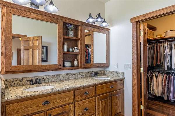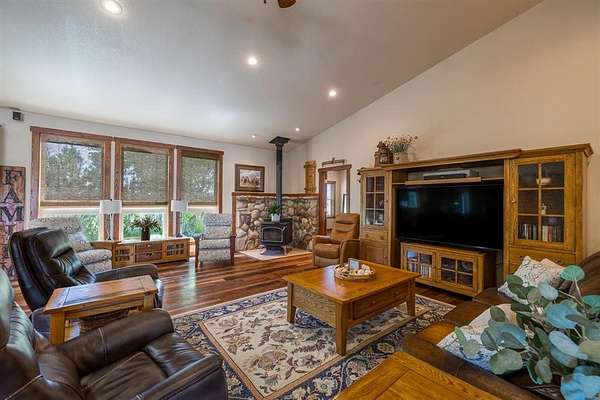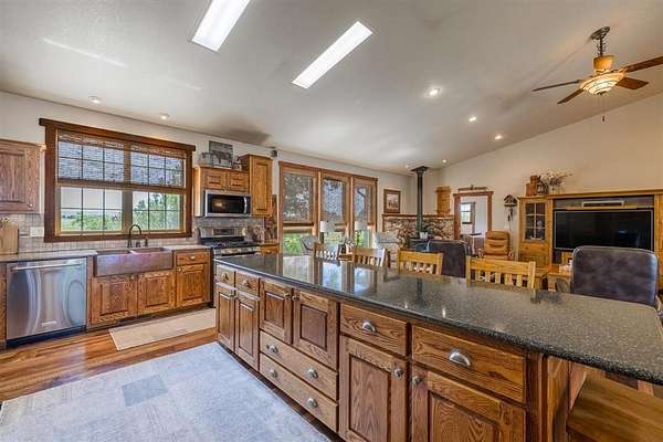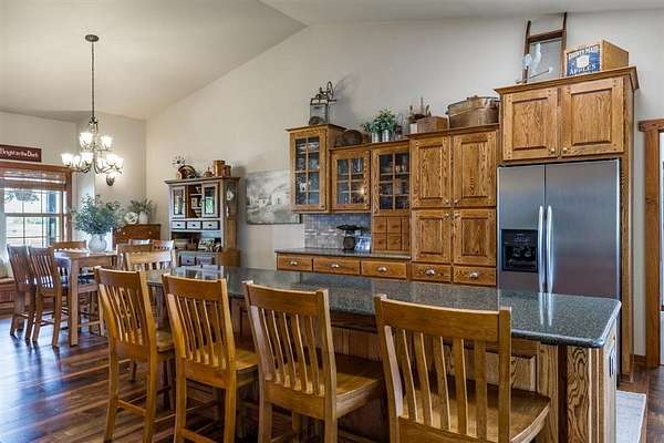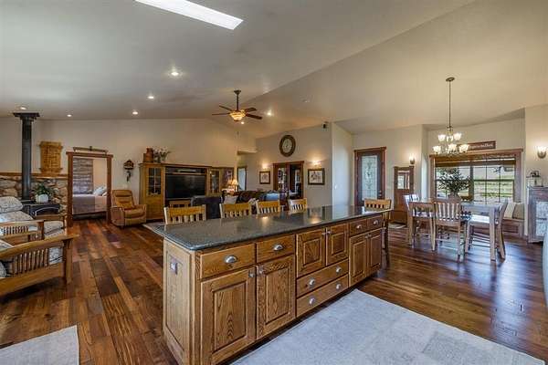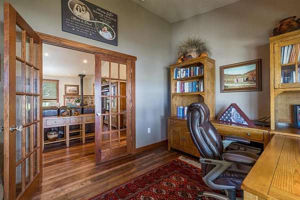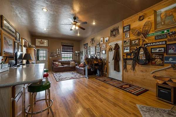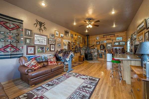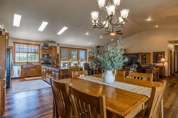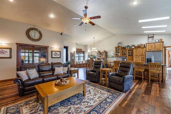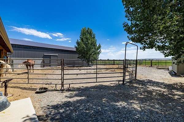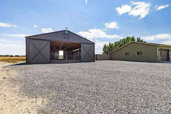 Idyllic Horse Property at the Edge of Lovell. Welcome to 61 lush, meticulously maintained acres at the edge of Lovell--an outdoor and animal lover's dream. Set against the backdrop of the Bighorn Mountains and just minutes from Yellowtail Reservoir, this exceptional property features a custom, high-end home with beautiful finishes; spacious kitchen with solid surface counters and custom cabinetry, wood floors, vaulted ceilings, walk-in showers, and a thoughtfully designed floorplan. Step outside to enjoy a flowered patio with a soothing waterfall, fire-pit, apple orchard, raspberry patch, and complete animal setup--including a dog kennel, chicken coop, and horse facilities with multiple pastures, two round pens, and a full arena. A detached 2-car garage with finished office/game room adds even more versatility. Whether you're riding trails or relaxing under the stars, you're less than 100 miles from Yellowstone Park and Billings, MT. This is more than a home--it's a lifestyle.