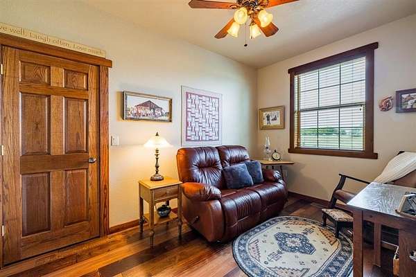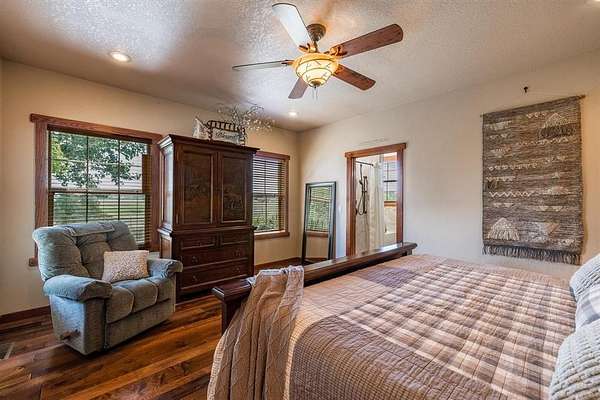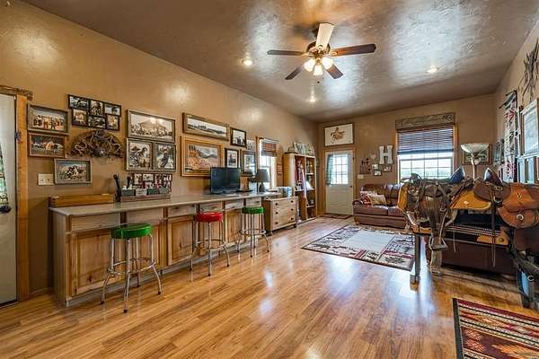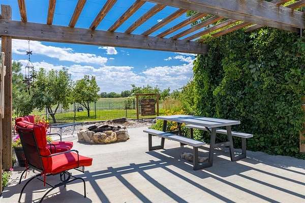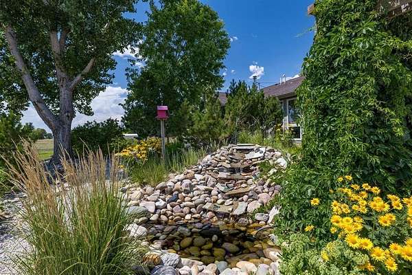 - Acreage Fenced, Barn, Concrete Ditches, Corrals, Exterior Lighting, Firepit (Built In), Garden, Horse Property, Irrigated, Landscaping, Loafing Shed, Natural Gas to Property, Outdoor LED Ext Lighting, Production Ground, RV/Boat/Trailer Parking, Rain Gutters, Shop, Sprinklers, Water Feature