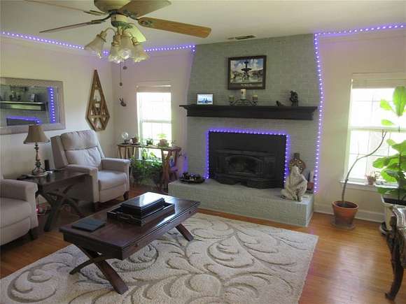 Nestled on 20 stunning acres of wooded land, this charming home offers a serene retreat with easy access to the city. The property boasts a seasonal pond, over 160 mature pecan trees, and a variety of oaks, walnuts, and other beautiful timber, creating a picturesque landscape year-round.