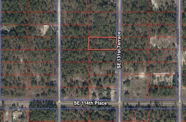 The subject is a vacant lot and does not yet have an assigned address. The address is approximate, is based on online resources, and is for mapping purposes only. Use the address to the south at the southwest corner of SE 114 PL and SE 131 Ter of 13171 SE 114 PL to help navigate to the area or use 29.166369, -82.549633 in your GPS or Goog maps to navigate directly to the property. The subject is located along the west side of SE 131 Terrace, approximately 560 feet (.11 mile) north of SE 114th Place . From the corner of County Road 337 and SE 114th Place, head east on SE 114th Place for .7 mile before turning left (north) on SE 131st Terrace. The subject is on your left, approximately .11 mile (560 feet) down. Look for the orange flags