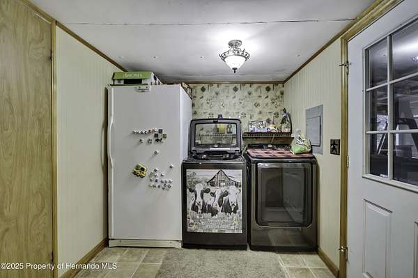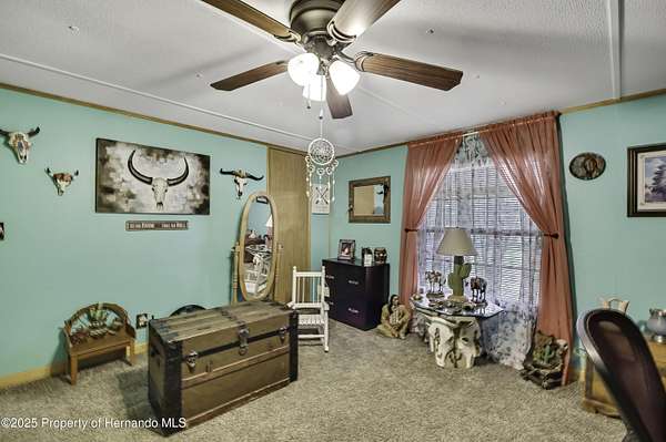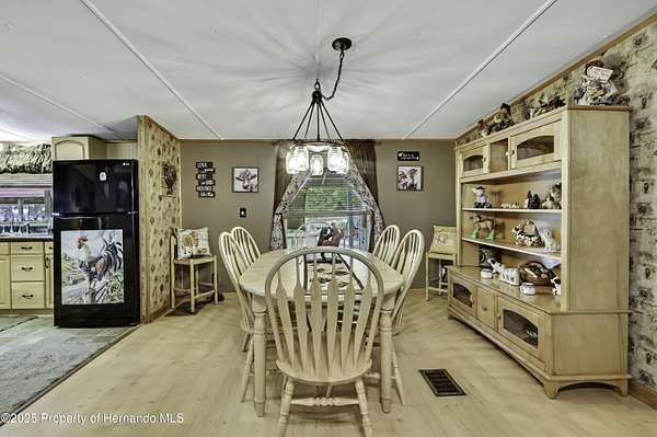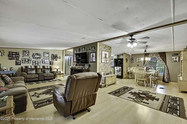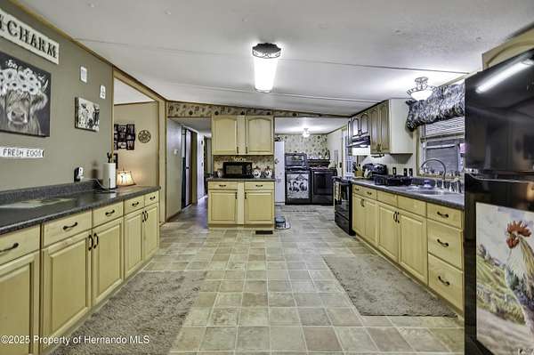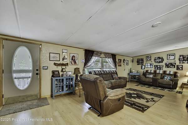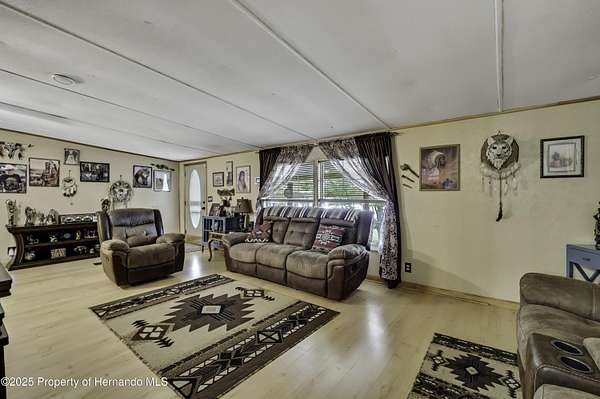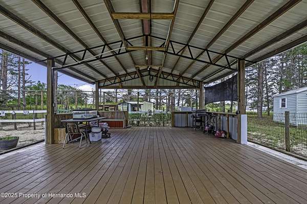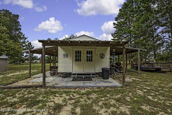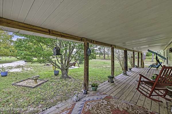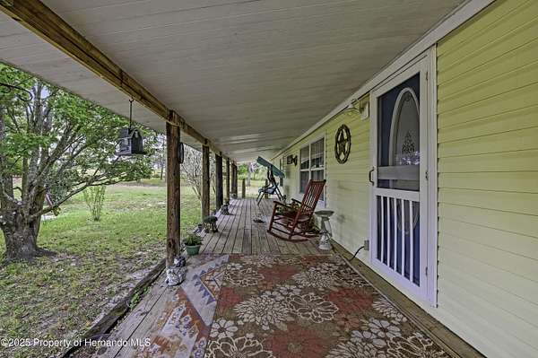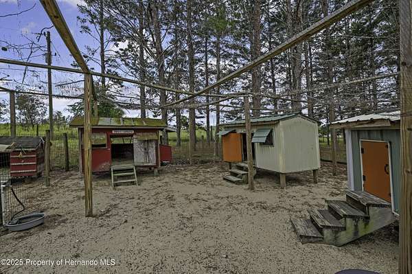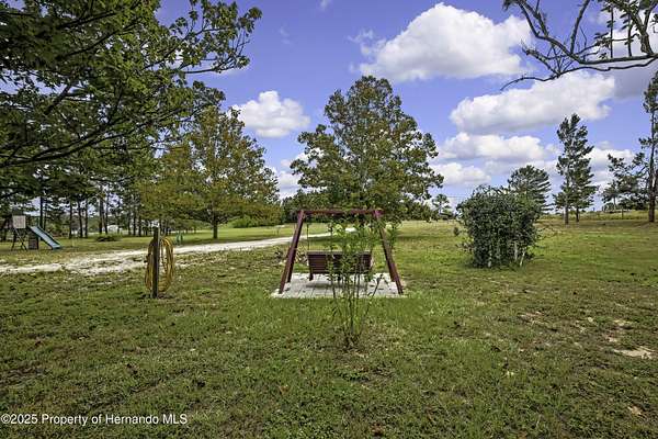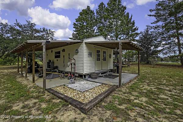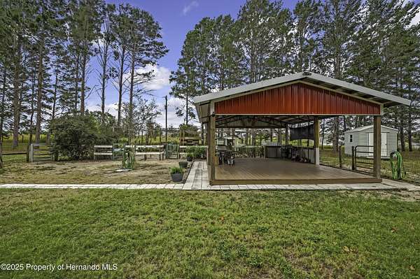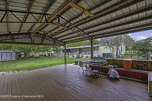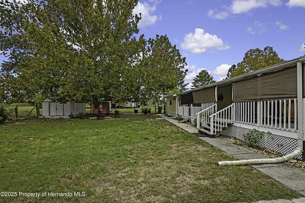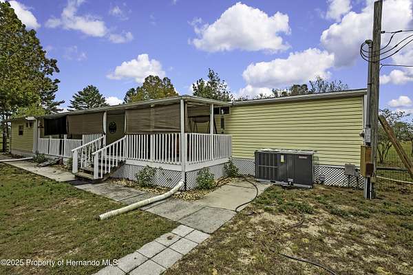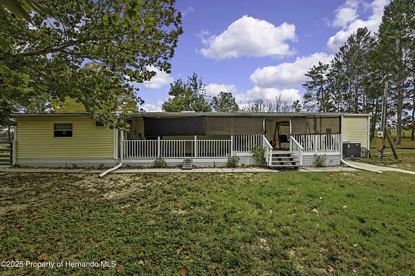 Looking for more space and privacy? Delightful and spacious 4-bedroom, 2-bath home that also includes an additional flex room. This 28x68 manufactured home is situated on a park-like 2.8-acre parcel on a paved road. Nestled in a peaceful setting, this home is perfect for families! Enjoy the tranquility of nature while being just minutes away from local amenities and schools. Bring the chickens! This property is zoned AR2 and includes 4 chicken coops in their own penned area. Farm animals welcome. Property is fully gated and fenced. This well-maintained home features an updated Roof 2016, updated AC-Heat Unit 2025, newer hot water heater and well tank. ADT security system installed. Interior features include a welcoming 13x17 living room, a separate 12x11 dining room and a generous 12x13 kitchen with ample cabinetry storage and a food pantry. If you love to cook there is plenty of space to add a center island for food prep or a breakfast bar. The inviting owner's bedroom includes a large 13x3 ft walk in closet. Just off the owner's suite is a separate flex room which would be great for an office, study, den or guest bedroom. There is access to the back porch from this room. This is a split floor plan. The three additional bedrooms and the second bath are located on the opposite side of the home. There is an interior laundry area just off the kitchen. Wake up in the morning and enjoy your coffee on one of two expansive covered porches located on the front and the rear of this home! The front porch faces east to view the sunrise or unwind after a long day at work on the back porch and watch the sunset. Beautiful mature maple and oak trees all around. There is also a spacious 20x24 covered pavilion with bench seating that would be great for family gatherings or your outdoor activities. There are two other outbuildings as well located in the backyard. A 14x24 shed with double door entry, electric and an alarm system. Plenty of room for all your tools, equipment, toys or could be used as a workshop. The other is a smaller 10x12 shed for odds and ends. This home is located close to shopping, restaurants, movie theaters and all other amenities on SR 50 and near the Suncoast Parkway for points north and south. Make your appointment today to view this awesome property!
