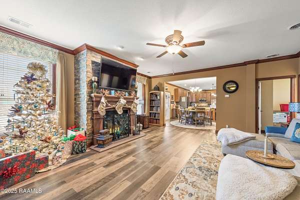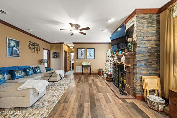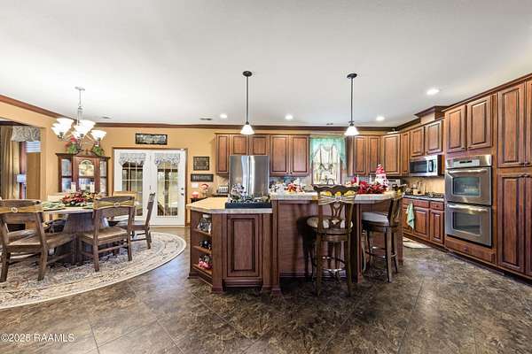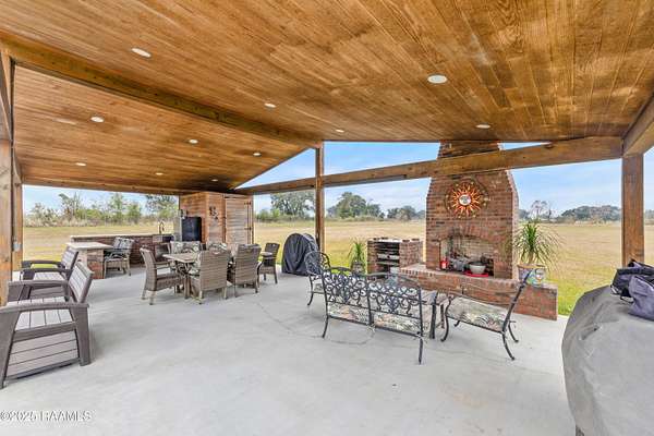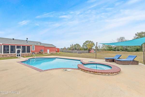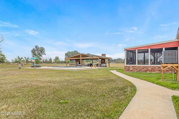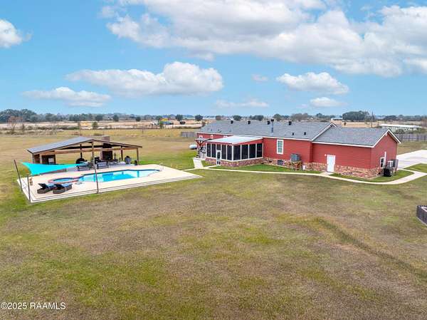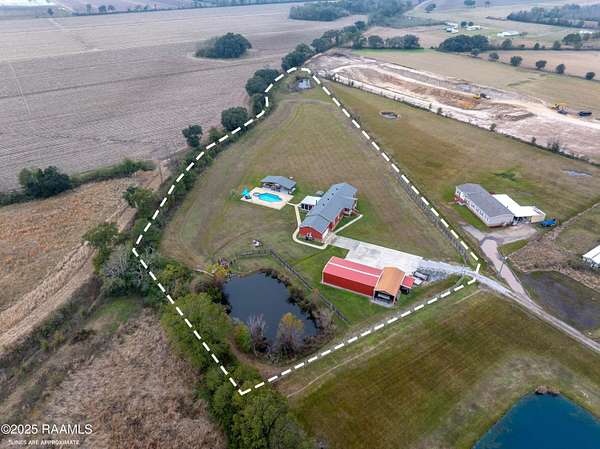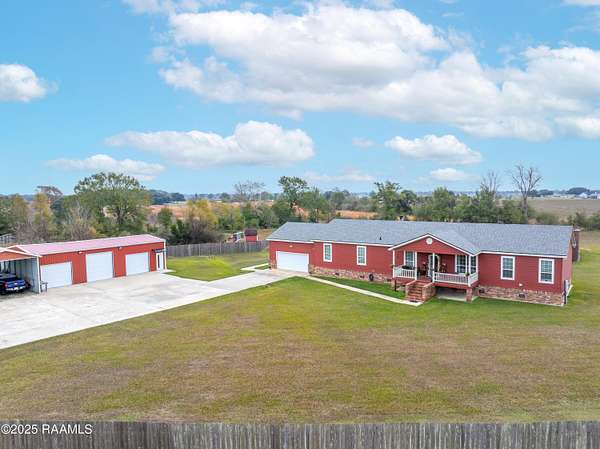 Offering $10,000 in Closing Costs with full-price offer! So many bells and whistles! Sitting on a full slab sprawling out over a huge 5.02 acres this beautifully designed 2011 modular home is set up to enjoy! A stunning oasis down a private road, this estate offers peacefulness and privacy. With major upgrades such as a new roof in 2020 AND new central unit in March of 2025 this home offers peace of mind to its next new owners. Location falls right near the Vermilion Charter Academy school and is within minutes of Lafayette. Zoned for Cecil Picard and North Vermilion public schools this set up includes two stocked ponds, an in ground heated pool (propane heat) with built in hot tub, 20x40 pavilion, 8x10 storage shed, 20x20 screened in patio, reverse osmosis system, 20x40 camper carport, plus a massive shop! Shop has been rated for 140mph winds, has 3 roll up doors with garage door openers (2-8x10, 1-10x10), led lights, comes cooled and heated, and measures a massive 25x50 feet. Completing outside is the entertaining pavilion. This beauty runs parallel to the pool and has its own 1/2 bath, bricked fireplace, open bbq pit, led lights, shop fan, plus built in bar with seating. Inside this home is a large 2400sqft of living, spacious kitchen with double ovens, centered kitchen island, a formal living room PLUS a separate den, wood burning fireplace, split floor plan, and en-suite bathroom and walk in closet for Primary Bedroom. Across the home you'll find the three additional bedrooms and baths. Move right in without worrying about any details! Sellers are leaving kitchen appliances, patio furniture, generator, porch furniture, outside fridges, trimmer, edger, washer, dryer, firewood rack, bar stools, chest freezer, plus living room furniture and wall mounted TVs all stay. (sectional couch not included) PLUS, sellers are leaving the 2-year-old riding mower with only 140 hours! Garage is also heated and cooled with loft area! All reasonable offers considered.