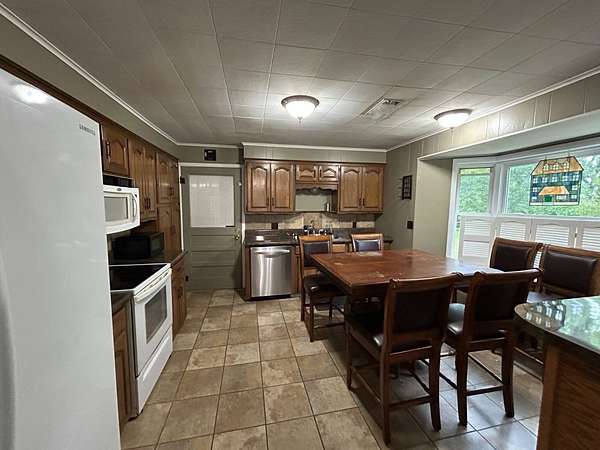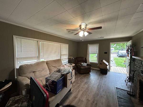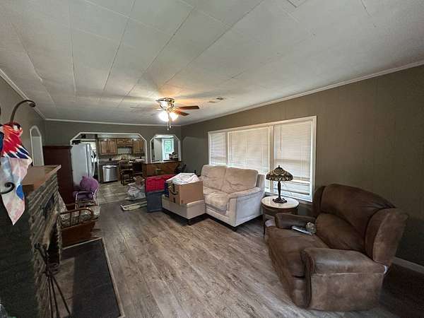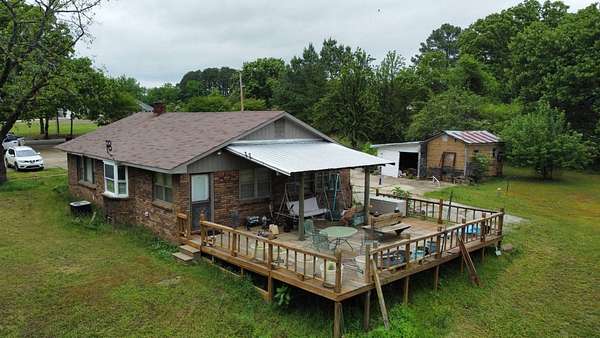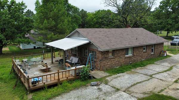 REAL ESTATE AUCTION! Located near Mountainburg, Arkansas, this 3-bedroom, 1-bath brick home will be sold at auction on Saturday, May 30th at 10:00 AM to the highest bidder-no reserve. Situated on approximately 1.6 acres +/- along a blacktop road, the property offers a large concrete driveway with ample parking and a spacious yard shaded by mature trees. Additional features include a metal storage shop with double doors for easy access, a covered concrete dog kennel, and more. The home boasts a large back deck ideal for entertaining or enjoying the peaceful surroundings, as well as a front deck designed for handicap accessibility. Inside, you'll find a functional layout with a small eat-at bar adjoining the kitchen, an eat-in kitchen area, a utility room, and a generously sized family room complete with a fireplace. This property is being sold at auction, and the price does not reflect its actual value. For full auction details, including the listing agency or auction company, please inquire.
