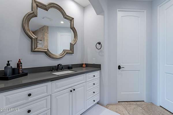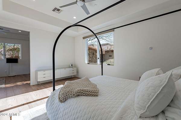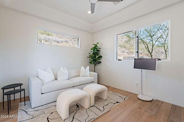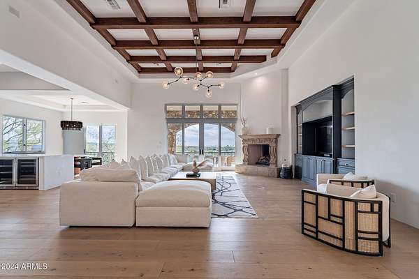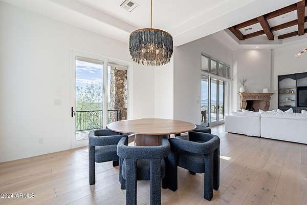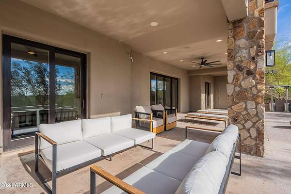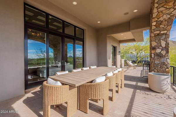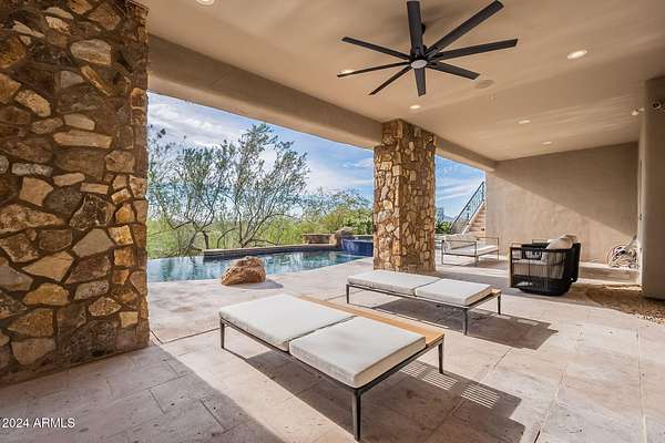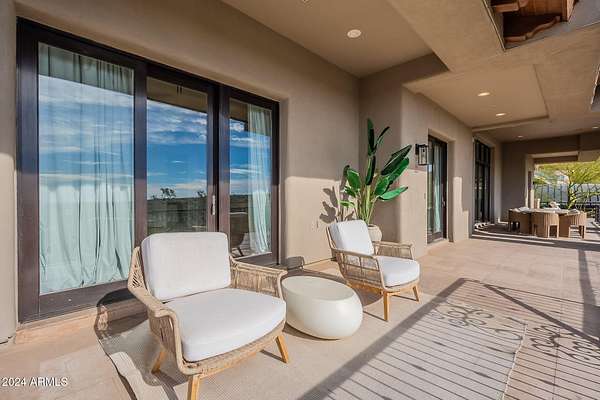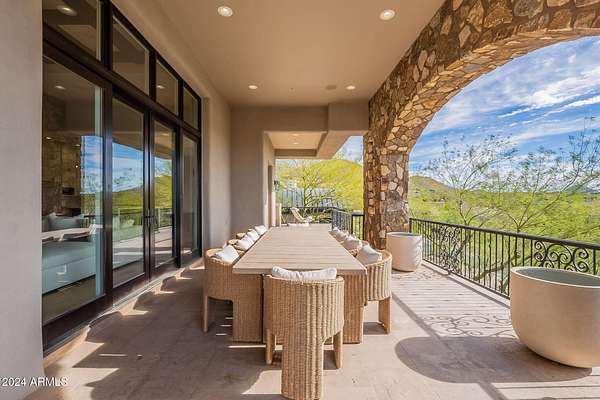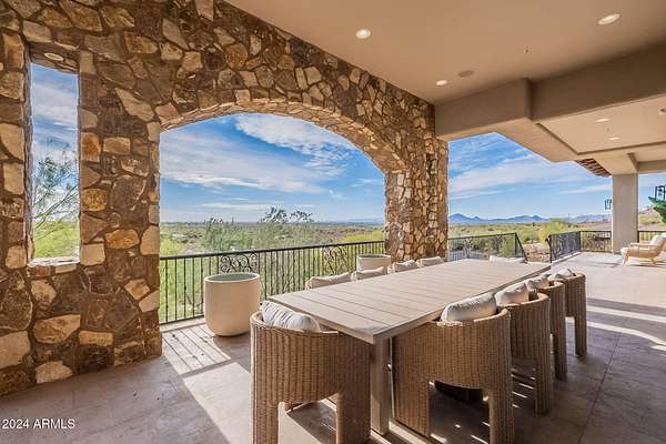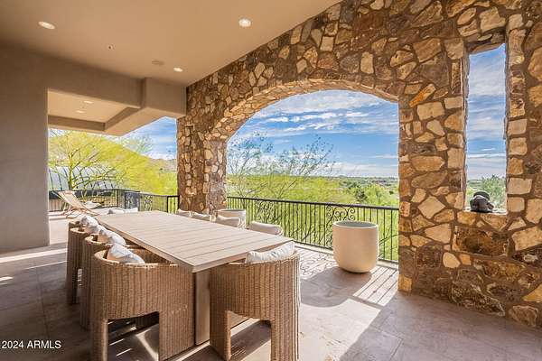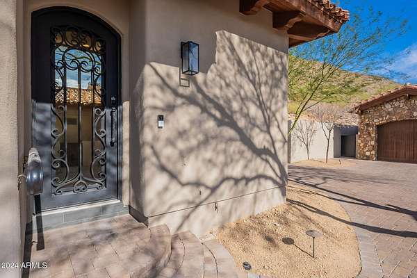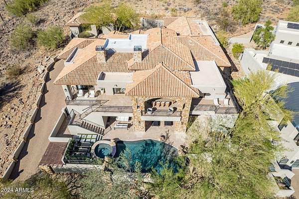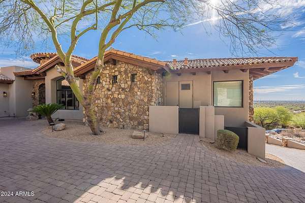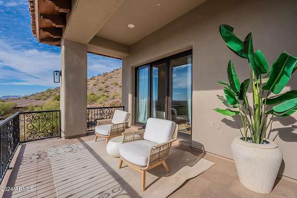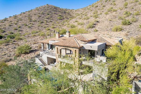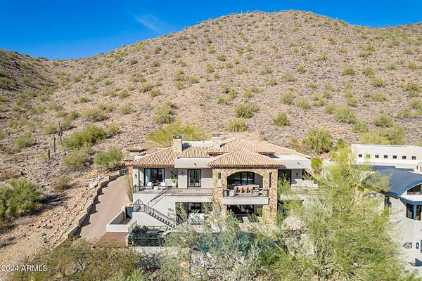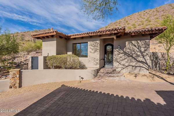 Perched above the valley within Scottsdale's prestigious Ancala community, this property is a rare executive retreat blending architectural authenticity with modern lock-and-leave luxury. Original wood beams span soaring ceilings, while expansive glass doors and windows frame sweeping desert and mountain views-inviting the light and rhythm of the landscape into every space. Designed for privacy and effortless living, this residence redefines convention in all the right ways. The elevated driveway leads to a home set high above the street, offering an uncommon sense of seclusion and arrival. The main level features a spacious primary suite and a versatile secondary room with a nearby powder bath-ideal as an executive office, den, or creative retreat. Downstairs, two additional bedrooms open directly to the pool terrace, creating a seamless connection between indoor comfort and outdoor serenity. One suite, once designed as a temperature-controlled wine cellar, retains its distinct charactercomplete with a compact ensuite bath and access to the pool deckoffering unique potential as a guest suite, gym, or media lounge. A detached guest casita extends the home's versatility, perfect for visitors, long-term guests or a private workspace. Every element emphasizes organic textures, light, and connection. Low-maintenance grounds make it ideal for those seeking sophistication without upkeep. With panoramic views, architectural warmth, and proximity to Ancala Country Club, golf, hiking, and Scottsdale's premier dining and shopping, this is a residence for those who value design, serenity, and distinction.