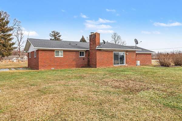 Set on 8 sprawling acres, this eye-catching solid brick ranch offers the perfect blend of privacy, functionality, and convenience. Whether you're dreaming of wide-open space, room for hobbies, or peaceful country living with an easy commute, this property delivers. A welcoming covered front porch leads into a generous living room highlighted by a huge picture window that fills the space with natural light. The spacious kitchen features granite counters, stainless steel appliances, and plenty of room for dining. Just beyond, the sunken family room with a cozy fireplace and doorwall to the backyard provides a flexible space that could also serve as a formal dining room or gathering area for entertaining. The main level offers three comfortable bedrooms with ample closet space, all sharing a large full bathroom with dual vanity and tub/shower combination - ideal for convenient one-level living. A guest half bath and separate laundry room add everyday functionality. With no basement to maintain, this home offers simplified living, while the oversized attached two-car garage keeps vehicles clean and dry and provides excellent additional storage. Outside, the possibilities truly expand. Two outbuildings - including a pole barn with cement floors, heat, air conditioning, and electricity - create the perfect setup for hobbyists, collectors, small business owners, or anyone in need of versatile workspace. Enjoy the peace and privacy of country living with the convenience of a quick drive to US-23, making commuting to Ann Arbor or Toledo easy and efficient. The expansive, flat acreage is ready for your imagination - gardens, a pool, a playscape, goal nets, animals, or simply room to roam. Space, serenity, and accessibility - all in one exceptional property. Don't miss this one!
