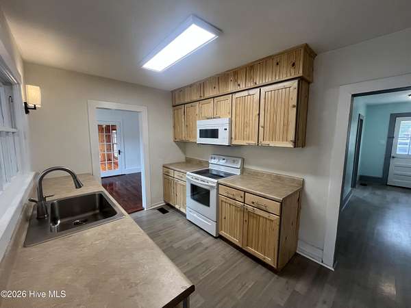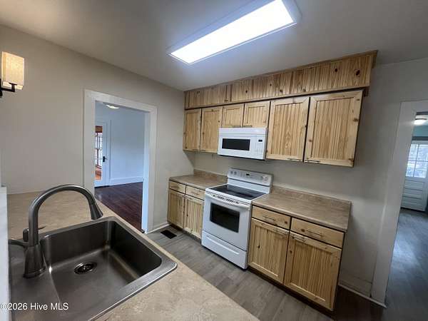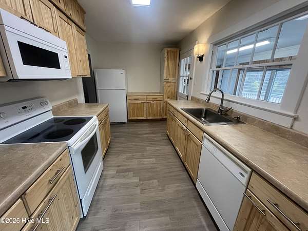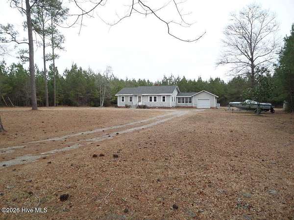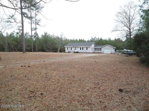 Discover your own slice of outdoor paradise in Pamlico County, NC! This charming 2-bedroom, 1-bath home offers the comforts of country living while remaining just minutes from everyday conveniences in nearby Grantsboro. Situated on 2.25 picturesque acres, this property delivers the perfect balance of privacy and accessibility. Tucked back from the main road, you'll be welcomed by a spacious front yard and wooded surroundings that create a peaceful, secluded setting. Inside, the 1,360-square-foot home features hardwood flooring throughout the main living areas and bedrooms, complemented by stylish LVP flooring in the kitchen and foyer. Mostly updated windows enhance both energy efficiency and comfort. The cozy living room showcases built-in shelving and a wood-burning fireplace--ideal for gathering on cool evenings. A formal dining room provides an inviting space for hosting dinners, while the bright sunroom offers flexibility as a home office, studio, or relaxing retreat. The sunroom also connects conveniently to the attached one-car garage. Step outside and take in sweeping views of the sprawling backyard--your own private outdoor oasis. Whether enjoying your morning coffee or unwinding at sunset, you'll appreciate the serenity this property provides. A 24-foot round above-ground pool with filter adds the perfect touch for warm-weather enjoyment. If you're looking for space, comfort, and the charm of rural living without sacrificing proximity to shopping, dining, and daily essentials, this property checks all the boxes. Don't miss your opportunity to call 1133 NC 306 Highway S home--schedule your showing today!
