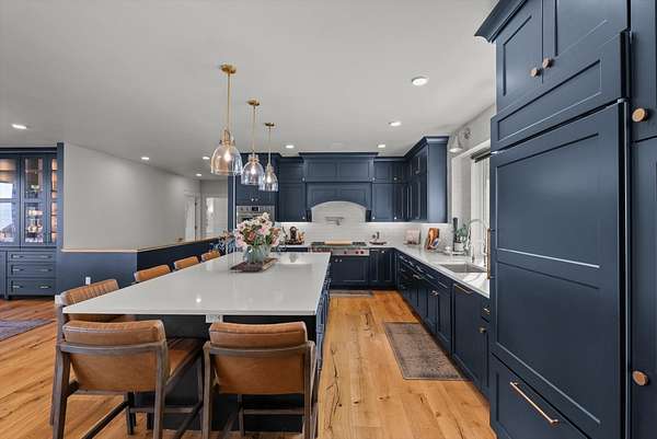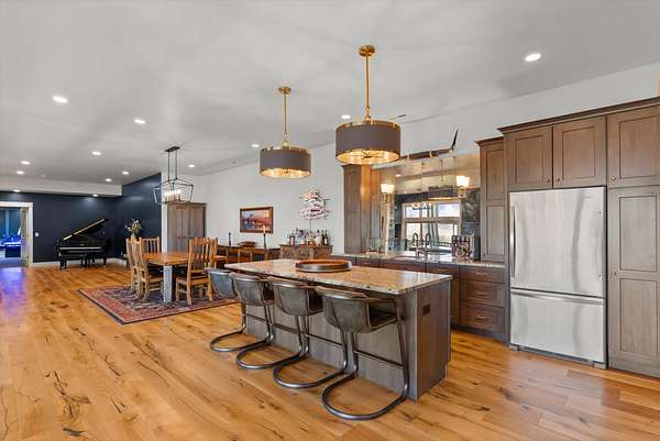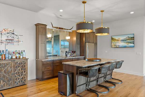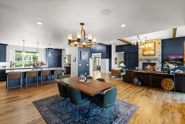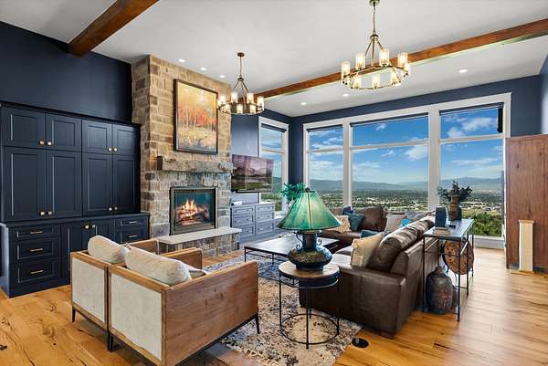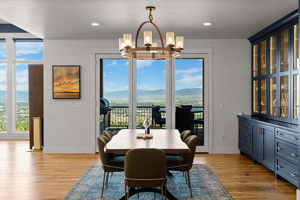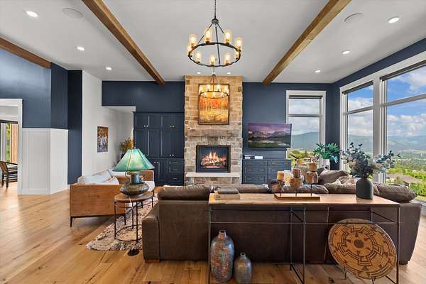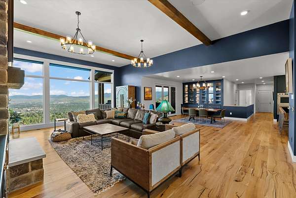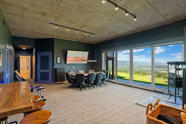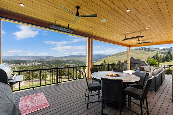Completed in 2022, this 7,418 sq. ft. custom luxury home at 1133 Pacific Drive offers elevated Montana living with panoramic views of the Missoula Valley and surrounding mountains. Set on 1.87 acres, the home features 5 bedrooms, 5 bathrooms, and an open-concept main level with a dramatic stone fireplace and expansive windows that flood the space with natural light. The chef's kitchen is a true showpiece, featuring quartz countertops, a large island with seating, Wolf gas range, Sub-Zero refrigerator, Bosch dishwasher, and a scullery ideal for entertaining. The main-level primary suite offers a peaceful retreat with its own fireplace, spa-style bathroom with heated floors, dual vanities, custom tile shower, soaking tub, and dual walk-in closets. The walk-out lower level features 12 ft. ceilings, three additional bedrooms (two ensuite with heated bathroom floors), a spacious second living area with gas fireplace, and an impressive wet bar with leathered granite countertops The walk-out lower level features soaring 10-12 ft. ceilings, three additional bedrooms (two ensuite with heated bathroom floors), a spacious second living area with gas fireplace, a large bonus room, and an impressive wet bar with leathered granite countertops. One of the home's standout features is the state-of-the-art theatre, installed just one year ago-complete with high-end sound, visuals, and luxurious seating for an immersive experience. Automatic window blinds were recently installed in the primary suite, both living areas, and the theatre, adding comfort and convenience throughout. The outdoor living area is designed for year-round enjoyment, high efficiency outdoor heaters, a built-in pellet grill and refrigerator, retractable sun screens, and a gas-plumbed fire table. Additional highlights include a Sonos sound system and a heated 4-car garage, and is wired in to install EV charging. Just minutes from downtown Missoula, this extraordinary property blends luxury, smart-home technology, and breathtaking natural surroundings.
