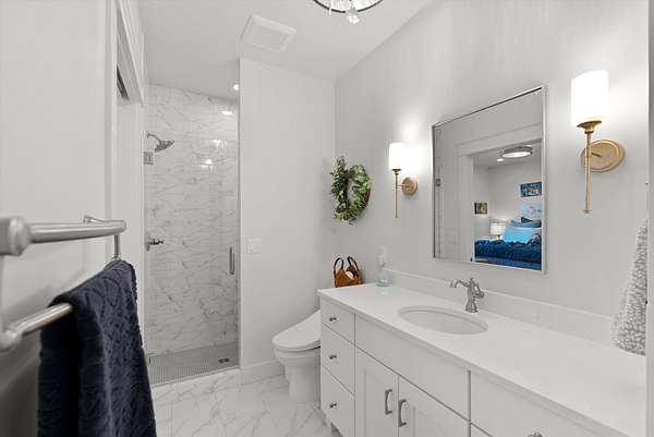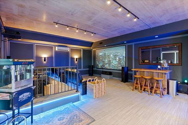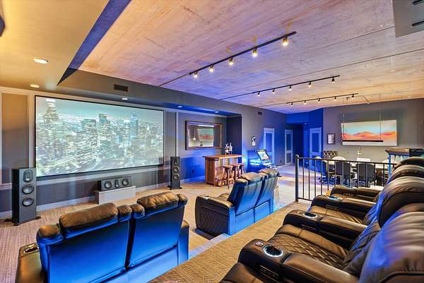 The chef's kitchen is a true showpiece, featuring quartz countertops, a large island with seating, Wolf gas range, Sub-Zero refrigerator, Bosch dishwasher, and a scullery ideal for entertaining. The main-level primary suite offers a peaceful retreat with its own fireplace, spa-style bathroom with heated floors, dual vanities, custom tile shower, soaking tub, and dual walk-in closets. The walk-out lower level features 12 ft. ceilings, three additional bedrooms (two ensuite with heated bathroom floors), a spacious second living area with gas fireplace, and an impressive wet bar with leathered granite countertops The walk-out lower level features soaring 10-12 ft. ceilings, three additional bedrooms (two ensuite with heated bathroom floors), a spacious second living area with gas fireplace, a large bonus room, and an impressive wet bar with leathered granite countertops. One of the home's standout features is the state-of-the-art theatre, installed just one year ago--complete with high-end sound, visuals, and luxurious seating for an immersive experience.