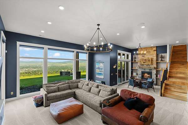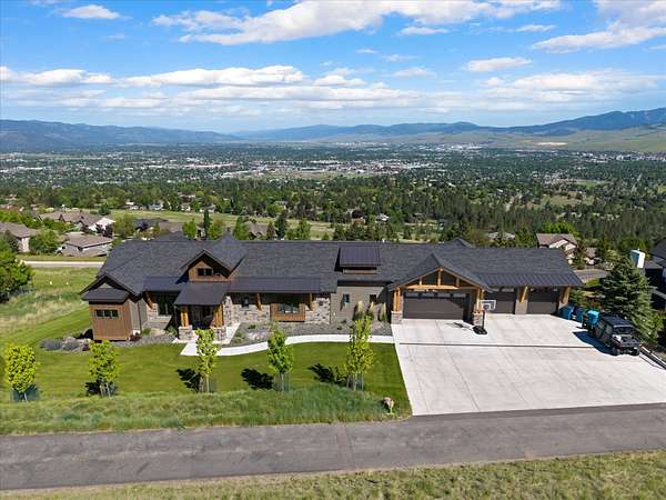 Completed in 2022, this 7,418 sq. ft. custom luxury home at 1133 Pacific Drive offers elevated Montana living with panoramic views of the Missoula Valley and surrounding mountains. Set on 1.87 acres, the home features 5 bedrooms, 5 bathrooms, and an open-concept main level with a dramatic stone fireplace and expansive windows that flood the space with natural light.