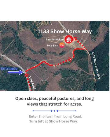 FL-285 N East on Hwy 90 North on New Harmony Rd East on Richardson Rd. and right at ''Y'' onto Long Rd. Continue on Long Rd. Drive past Chapel Rd. on Right, to private gated entrance that leads to Show Horse Wy