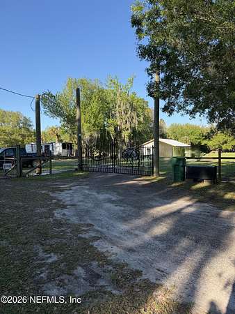 Bring your animals! Extremely rare opportunity to own over 11 gated and fully fenced acres in Oak Hill, Fl(currently a farm). Enjoy the peace and quiet on the end of this dead end road, without noise or light pollution. All land improvements have been made within the past year - power, well, pump, pump-house, RV outlet, shed, large duck pond, enclosures... etc. Brand new 12x24 pump house with 12x24 covered porch. The property has an automatic transfer switch wired for a generator to cover the pump house and any future additions. Excellent for your future dream home, and zoned for up to 3 dwellings(primary, accessory, farm worker). Over 3 acres of wooded property full of wildlife - deer, turkey... etc. Over 7 acres of mature oak and palm trees. The farm, animals, RV, and entity are not for sale, this is land only.
