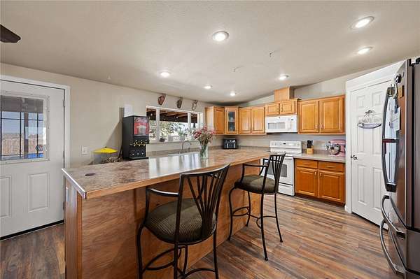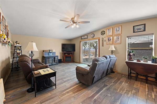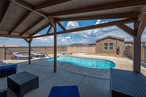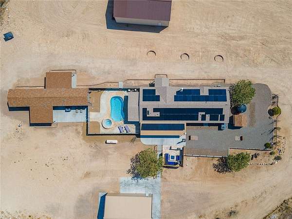 Homes like this don't come along often. Two homes, incredible garage space, and a backyard designed for entertaining make this property truly one of a kind. The main home offers 2,432 square feet with four bedrooms, three full bathrooms, two living areas, and a large eat-in kitchen that is perfect for everyday living and entertaining. Built in 2006, it also features owned solar, an all-electric system, and a covered patio to enjoy the views year-round. The permitted guest home was built in 2021 and has its own septic system. With 1,088 square feet, two bedrooms, two bathrooms, and two covered patios, it is ideal for extended family, guests, or rental potential. Outside is where this property really shines. The backyard feels like a private resort with a stunning heated in-ground pool, spa, and waterfall completed in 2022. There is also a built-in BBQ area with seating and a propane firepit, making this an entertainer's dream. Add in a horseshoe pit, fully irrigated yard, and sweeping 360-degree views, and you have a setting that is hard to beat. And then there is the garage space. With at least 12 garage spaces across two separate garages totaling nearly 3,000 square feet, there is room for vehicles, toys, equipment, or a serious workshop setup. Fully fenced with a solar-powered gate, private well, and ample power, this property offers flexibility, privacy, and a lifestyle that is truly special.