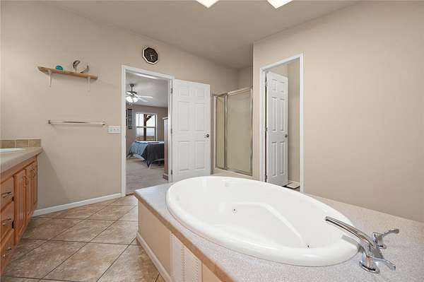 - Breakfast Bar, Ceiling Fans, Dining Area, Great Room, Jetted Tub, Kitchen Island, Laminate Counters, Laminate Countertop, Pantry, Programmable Thermostat, Walk In Closets
