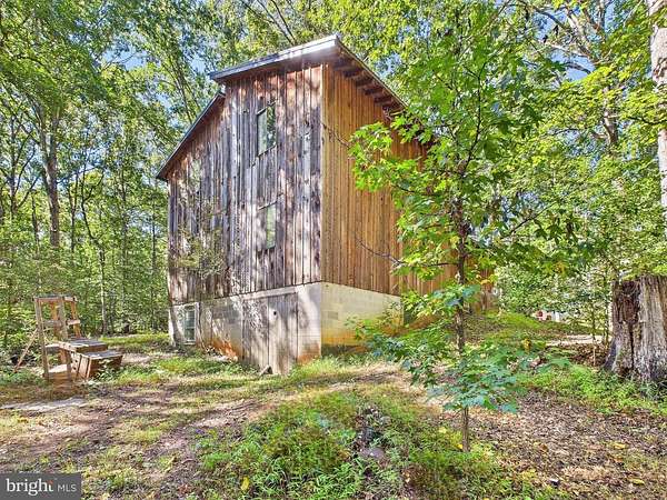 Tucked away on a beautiful 3 acre lot sits this unique property fully secluded and tranquil. Built with Pine siding, 315 ft dug well, and a 3 year old metal roof. Envision the possibilities and potential with the 2 story high ceiling, wood interior, and large windows letting light and nature view flow in. Wood flooring throughout most of the home was repurposed from a roller skating rink! The main level provides a primary bedroom, kitchen, laundry, and cozy living area with grand fireplace. Upstairs is potential for 2 more bedrooms, full bath, and loft space. Full unfinished basement with wood stove and lots of room for storage, workshop, or tools. New pipe at basement flew- 200 amp electric panel all 12 gauge wire copper. This is a great property for anyone looking for a passion project with a vision!