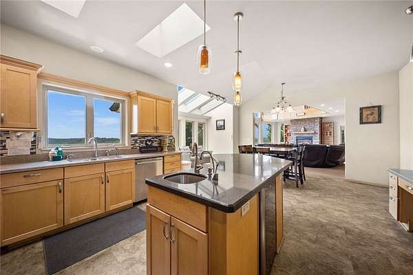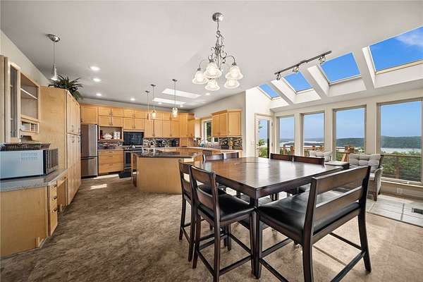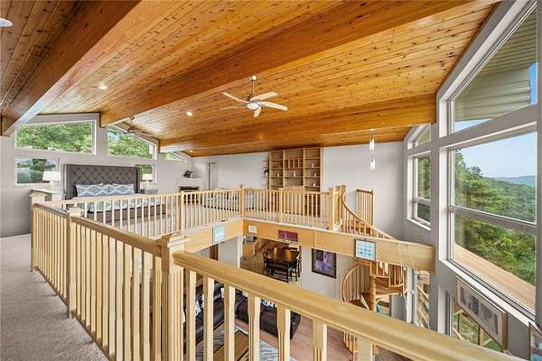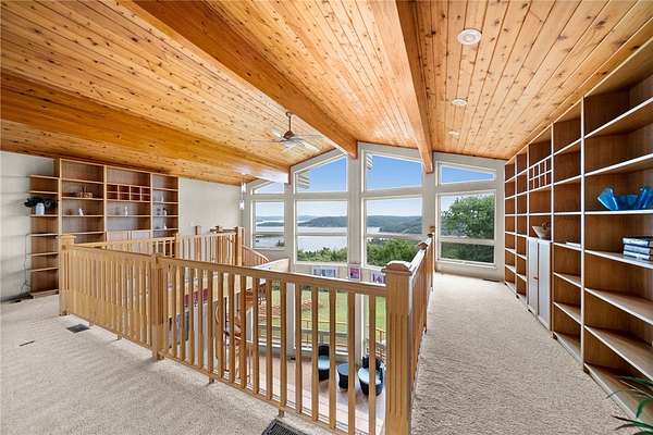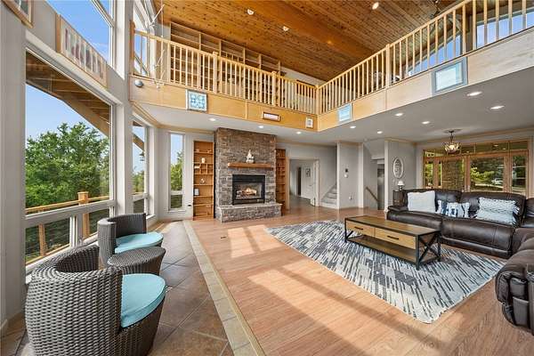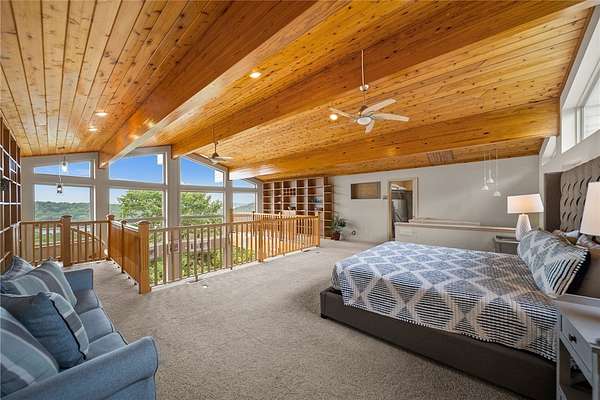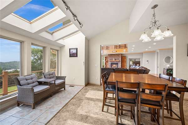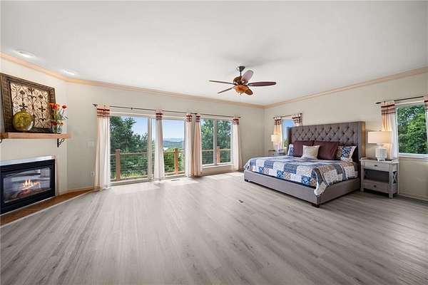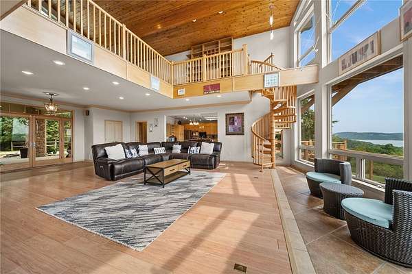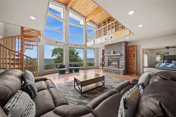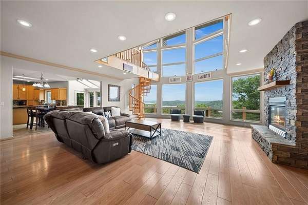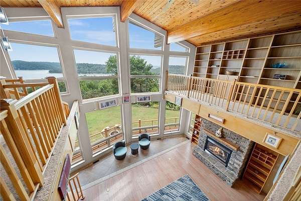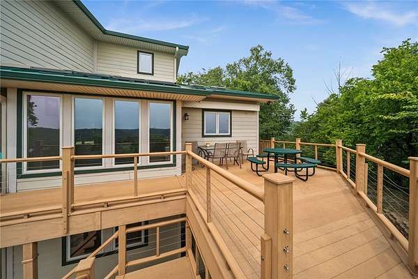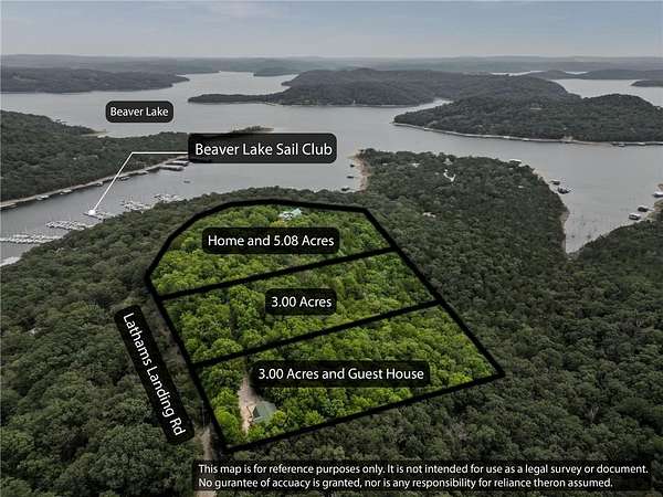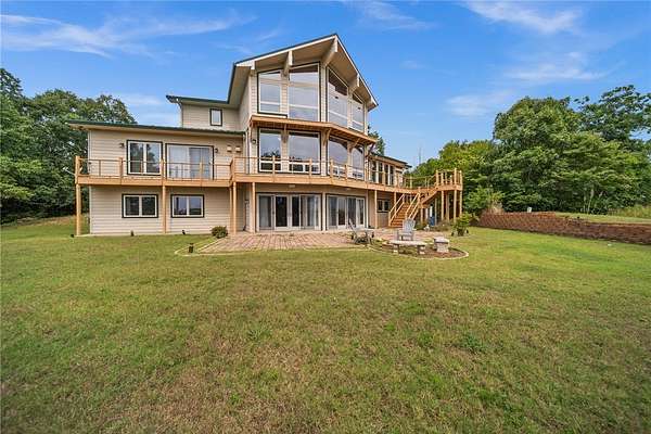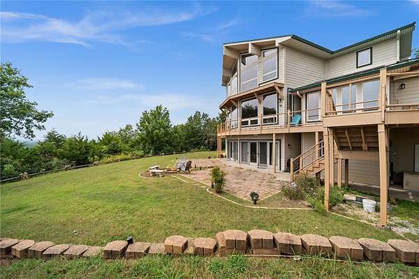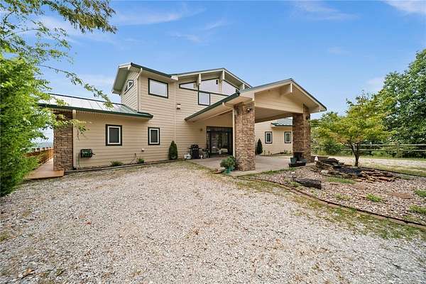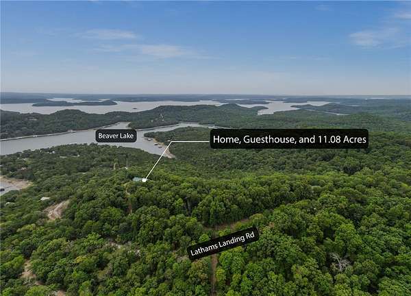 Private 11.08 acre Beaver Lake retreat with expansive lake views that includes a 4,440 sq ft main home and 644 sq ft guest house. This 3 bedroom custom Stitt Energy home showcases sweeping lake views from nearly every room. Designed for both relaxation and entertaining, the home features spacious living areas, large windows and seamless indoor-outdoor flow to expansive decks overlooking Beaver Lake. A charming 644 sq ft guest house with a garage provides the ideal space for visitors, extended family or a private office. Whether you're enjoying the quiet of your private acreage, taking in breathtaking sunsets, or hosting gatherings, this property offers a rare opportunity to own a true lakeview sanctuary. Conveniently located 3.5 miles from Lost Bridge Marina where the 10'x24' leased slip with a boat lift can transfer to a new owner and only 0.4 miles to Beaver Lake Sailboat Club. Extra amenities include a whole house generator, a detached 10' x 12' storage building, a fire pit, and ample parking.