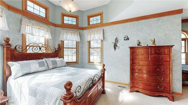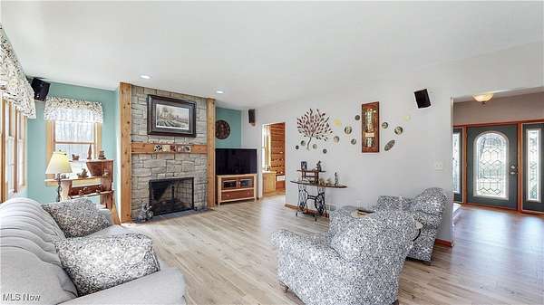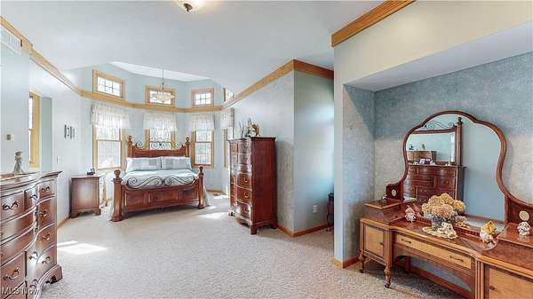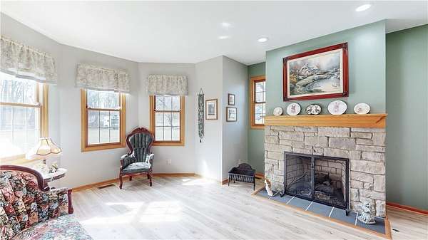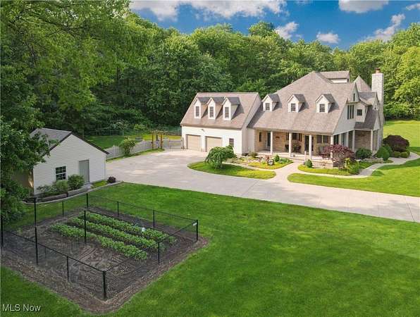 Custom Built home in Lake School District sitting on nearly 6 acres! Outdoor kitchen w electric, sink, refrigerator and patio with fountain. Herb garden, 3 irrigated raised beds plus a partially covered brick patio and a fenced in portion of the yard w shed- all backing up to gorgeous wooded land. Custom quality and attention to detail is found throughout the home including 9 ft ceilings, 6 panel solid wood doors, 3 zone heating & cooling, Whole house generator, 54 windows for gorgeous natural light & custom vinyl siding for cedar look. Beautiful foyer entry flanked by the living rm w stone gas fireplace and dining rm w chair rail and access to the wrap around front porch. Kitchen w center island, eating area and pantry w roll outs plus dual oven and gas cooktop. Great room w gas ventless fireplace, wired for surround sound & incredible walk-in library w rolling ladder! 1st floor 1/2 bth w large vanity plus a 1st floor laundry w sink & cabinets. A private 4th bedroom is located over the garage w dormers & big walk-in closet- great for guests w excellent privacy. Upstairs there are three more bedrooms- each with its own private full bathroom! The master suite has a breathtaking octagon 12 ft ceiling w fluted trim, dormer, multiple closets- including a large walk-in closet plus a master bathroom w jetted Jacuzzi, seamless shower surround, private commode and bayed window w view out back. The finished basement w pool/ping pong table also adds additional living space plus storage space. 2 Car attached garage w direct basement stairway, H/C water, 4 in floor basin plus a detached 2 car (20x20) garage w electric, concrete and opener and a separate gravel drive, perfect for an RV. Updates include: 2024: Dishwasher, Dual Oven, 1st Floor LVT Flooring, Air Tank for Well. 2021: Furnace, A/C, Well Pump. 2016: Dimensional Shingle Roof. Kitchen was updated 8-10 yrs ago w Quartz Counters, Refinished Cabinets & wrapped solid wood on sides. Possession to be No earlier than Dec 12th.