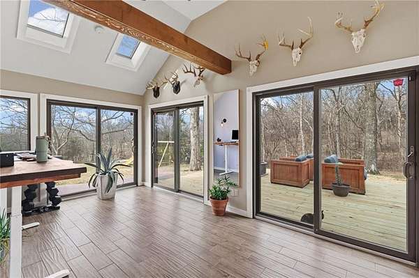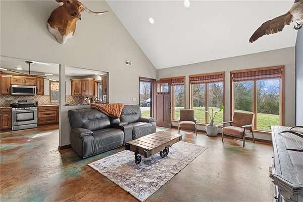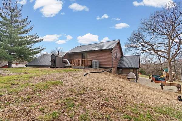 Tucked away at the very end of a quiet dead-end road, 11338 Deer Haven Lane is the definition of a private, wooded retreat. Nestled on 7+ acres, this one-of-a-kind property offers the perfect blend of peaceful country living and modern convenience with your own personal oasis surrounded by nature. This well-maintained home features thoughtful updates throughout, including a brand new metal roof (2025), new carpet, a new deck perfect for enjoying the serene setting, and updated tile in the sunroom-an ideal space to relax and take in the views year-round. Stay connected with fiber internet while enjoying the seclusion of rural living. Designed with both comfort and self-sufficiency in mind, the property is truly homestead-ready. You'll find a fully functioning chicken coop with laying hens and a turkey, a beehive with supplies, and a garden plot ready for your next harvest. A heat pump paired with an outdoor wood stove offers efficient, versatile heating options. For hobbyists and outdoor enthusiasts, this property delivers-featuring a 100-yard rifle range and a partially finished shop equipped with a mini split system and rotary phase converter. The home also includes a Bluetooth-enabled garage door, long-distance driveway alarm, closed-circuit surveillance system, and a professional alarm system with monitoring for added peace of mind. Additional highlights include a new water softener system with reverse osmosis, gas stove, and included garage shelving, air compressor, and kitchen appliances. The mower, upright deep freeze, washer, and dryer are negotiable. Located in Ray County with Excelsior Springs School District, this rare property offers privacy, functionality, and endless opportunity-all in a beautiful wooded setting.