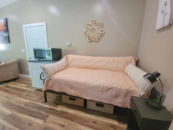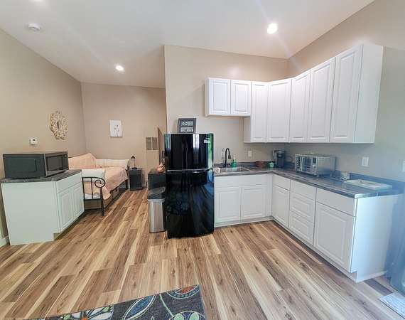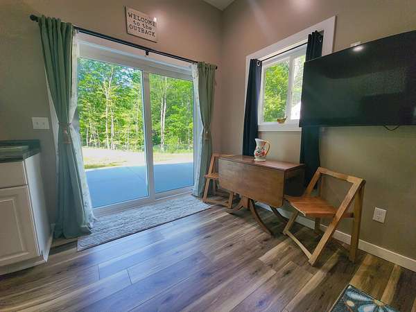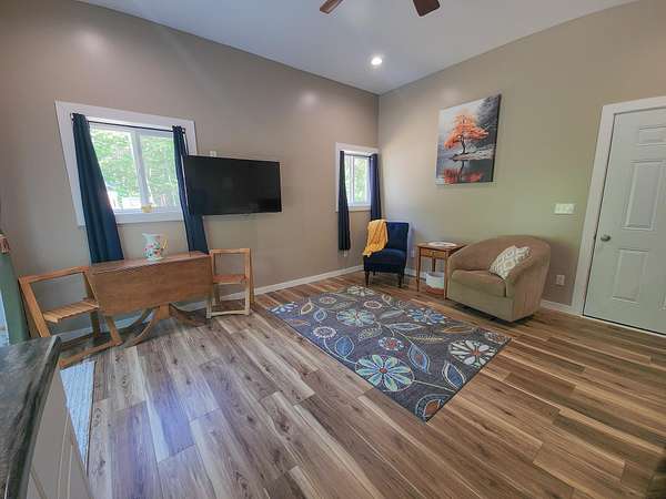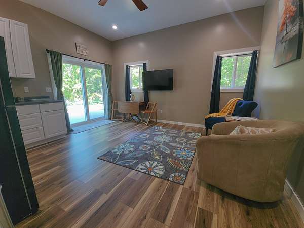 This one-of-a-kind barndominium offers the best of both worlds, plenty of storage space and living space! Just built in 2024, this 24x40 building includes a 384 square feet (16x24) studio apartment with a full bathroom. Leaving 24x24 for storage space for a workshop or toys! This could be your weekend retreat, hobby spot, or low maintenance full-time home. Everything is brand new- including the well and septic installed in 2024- so you can move in worry-free. Studio has a natural gas wall furnace, on-demand water heater, and PEX plumbing. The living room has a slider that opens out to the large, fenced-in back yard. Perfect for bonfires, get togethers, or pets. Bring your boat and your guests- there's plenty of parking too! Across the street from Gray Lake, and close to both All-Sports Crooked and Eight Point Lake for on the water fun. Biking, walking, or snowmobiling more your thing? The Pere Marquette Rail Trail is just a few miles away. You're right in the middle of year-round adventure possibilities. Furniture and appliances are negotiable, so you can make it yours without the hassle.Please Note: Shed on Property Not Included in Sale
